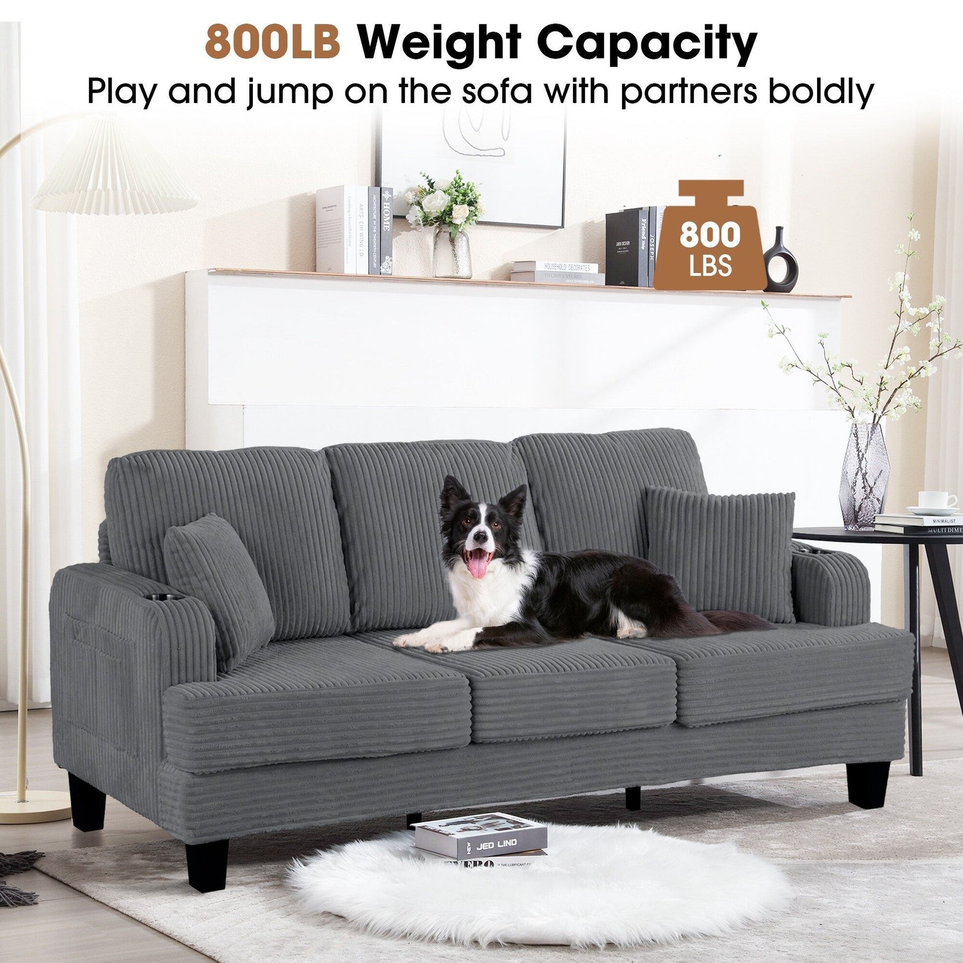 Goditi una fusione di funzionalità, comfort e stile con il divano rettangolare a 3 posti in velluto a coste moderno da 85 piedi con USB e 2 cuscini. La sua forma rettangolare e le linee pulite aggiungono un tocco minimalista e moderno a qualsiasi arredamento. Una delle caratteristiche distintive di questo divano è la porta USB integrata, che ti consente di caricare comodamente i tuoi dispositivi senza lasciare la comodità della tua seduta. Il divano è inoltre dotato di due cuscini coordinati per un maggiore comfort e un tocco estetico. Il suo spazioso design a 3 posti garantisce ampio spazio per te e i tuoi ospiti, rendendolo la scelta ideale per ampi spazi abitativi o soggiorni familiari.