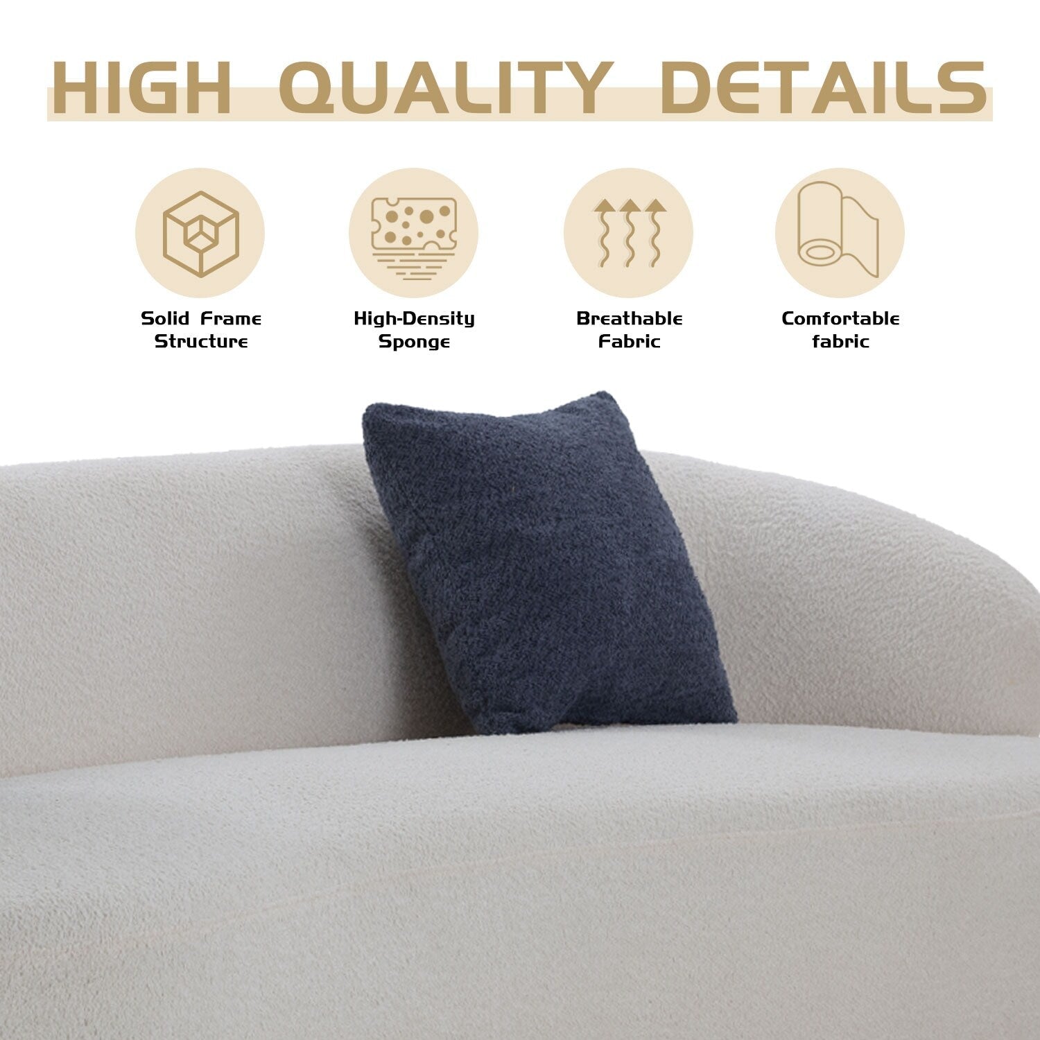 Questo moderno divano imbottito a 3 posti illuminerà il vostro soggiorno. La forma curva di questo divano aggiunge un tocco contemporaneo a uno stile tradizionale. Sono disponibili tre colori: beige, grigio chiaro e blu, per il tessuto in poliestere, che aggiunge un tocco distintivo. Questo divano curvo è ideale per chi cerca un design di metà secolo, facile da abbinare e che aggiunga raffinatezza alla propria zona giorno. Il divano è moderatamente rigido. Un divano semirigido è sempre un acquisto saggio. Può durare a lungo e offre un supporto maggiore rispetto a un divano morbido. Un divano e due cuscini coordinati sono inclusi nella confezione. Cosa c'è di meglio? Si può risparmiare tempo e fatica, poiché non è necessario montarlo.