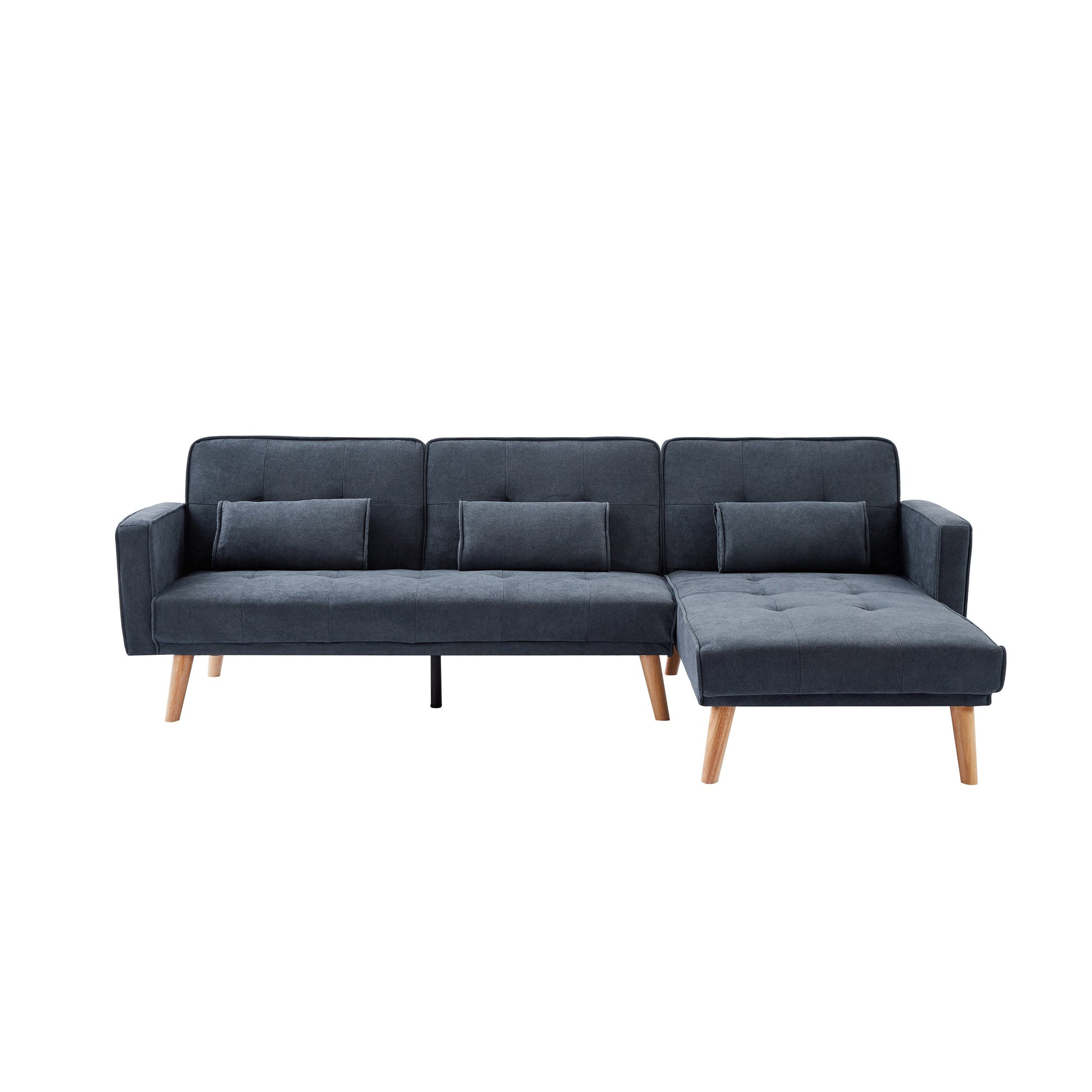 Divano trasformabile in lino da 94,5'' a 3 posti con chaise longue destra, imbottitura in schiuma, borsa organizer e braccioli quadrati