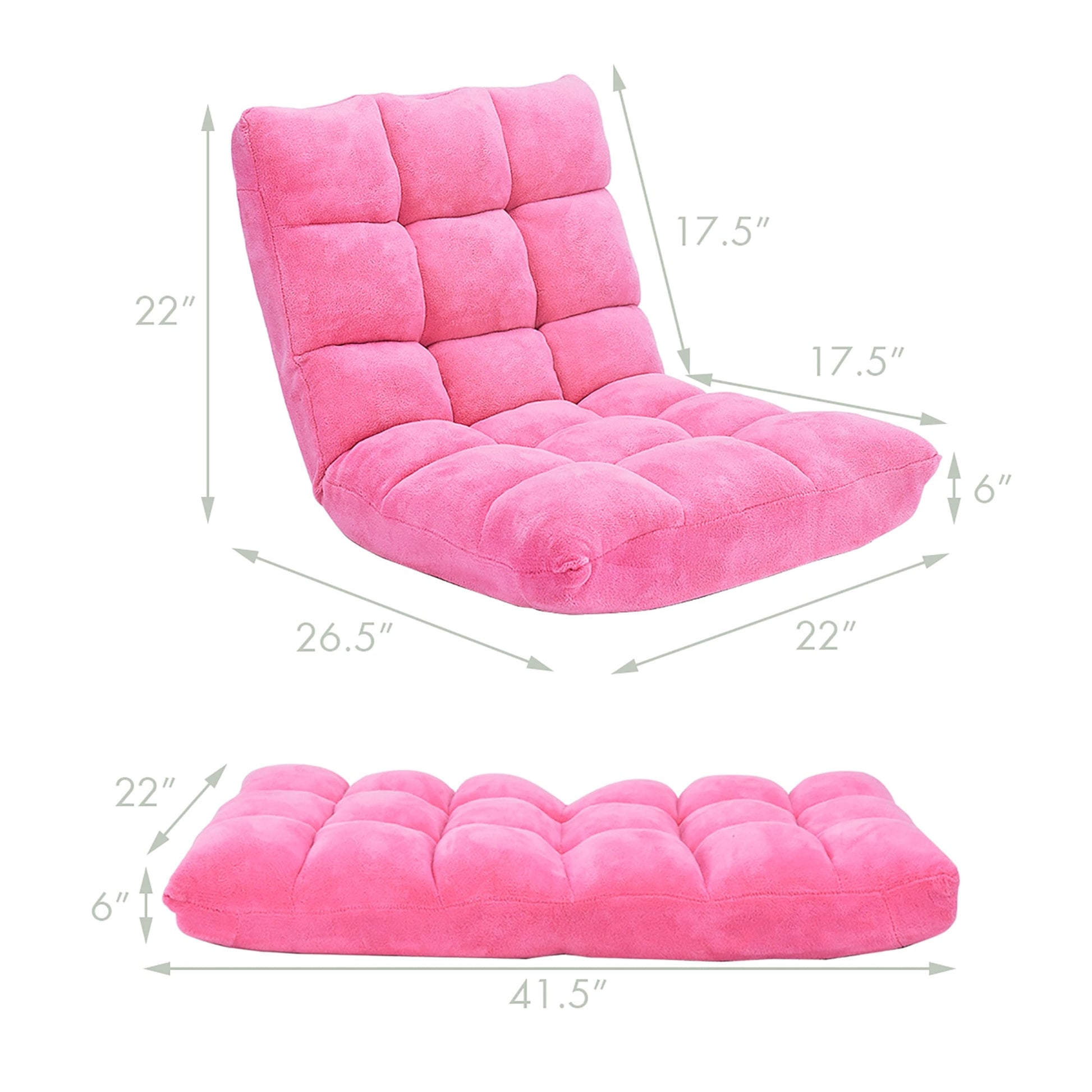 Ideale per rilassarsi leggendo o guardando la TV, questa poltrona reclinabile da terra è comoda e versatile. Progettata per essere posizionata direttamente sul pavimento, la poltrona reclinabile è dotata di un'imbottitura in memory foam di alta qualità e di una seduta e uno schienale confortevoli, rivestiti in velluto con lavorazione capitonné. Lo schienale è regolabile in 14 posizioni diverse, consentendo di reclinare l'inclinazione più adatta alle proprie esigenze.