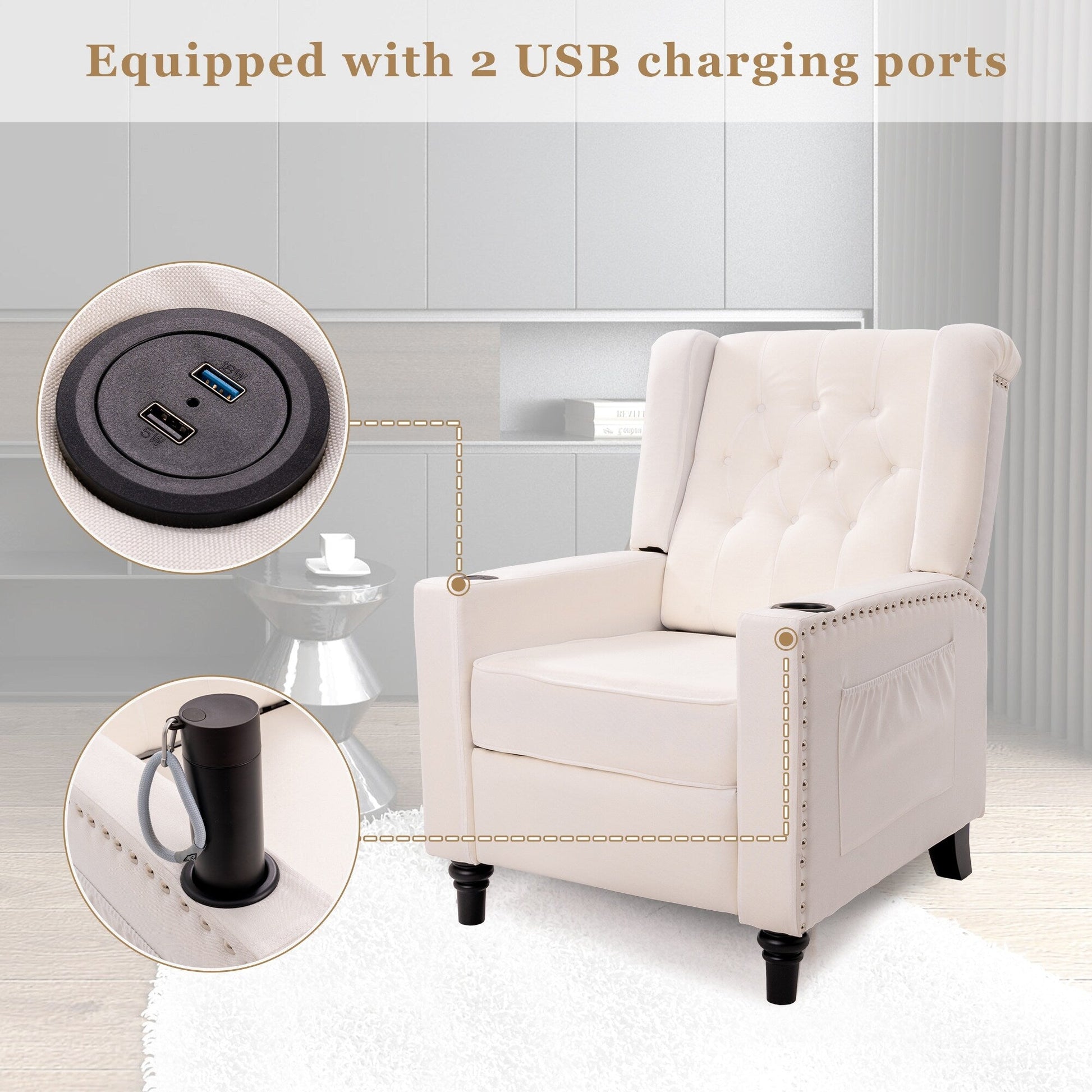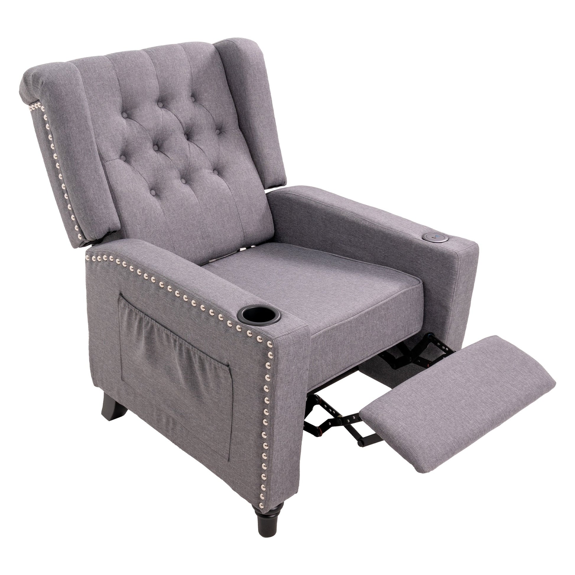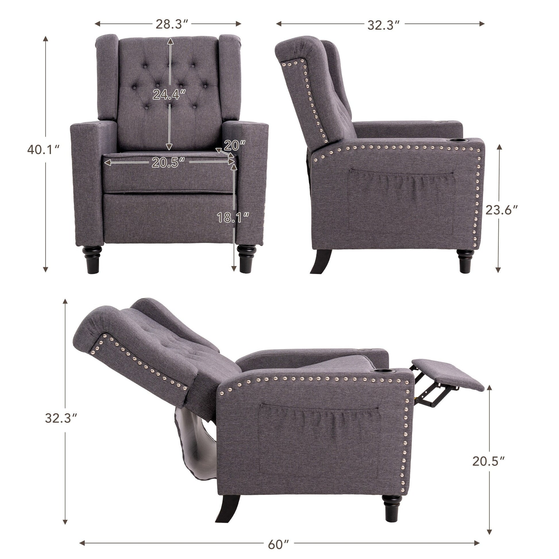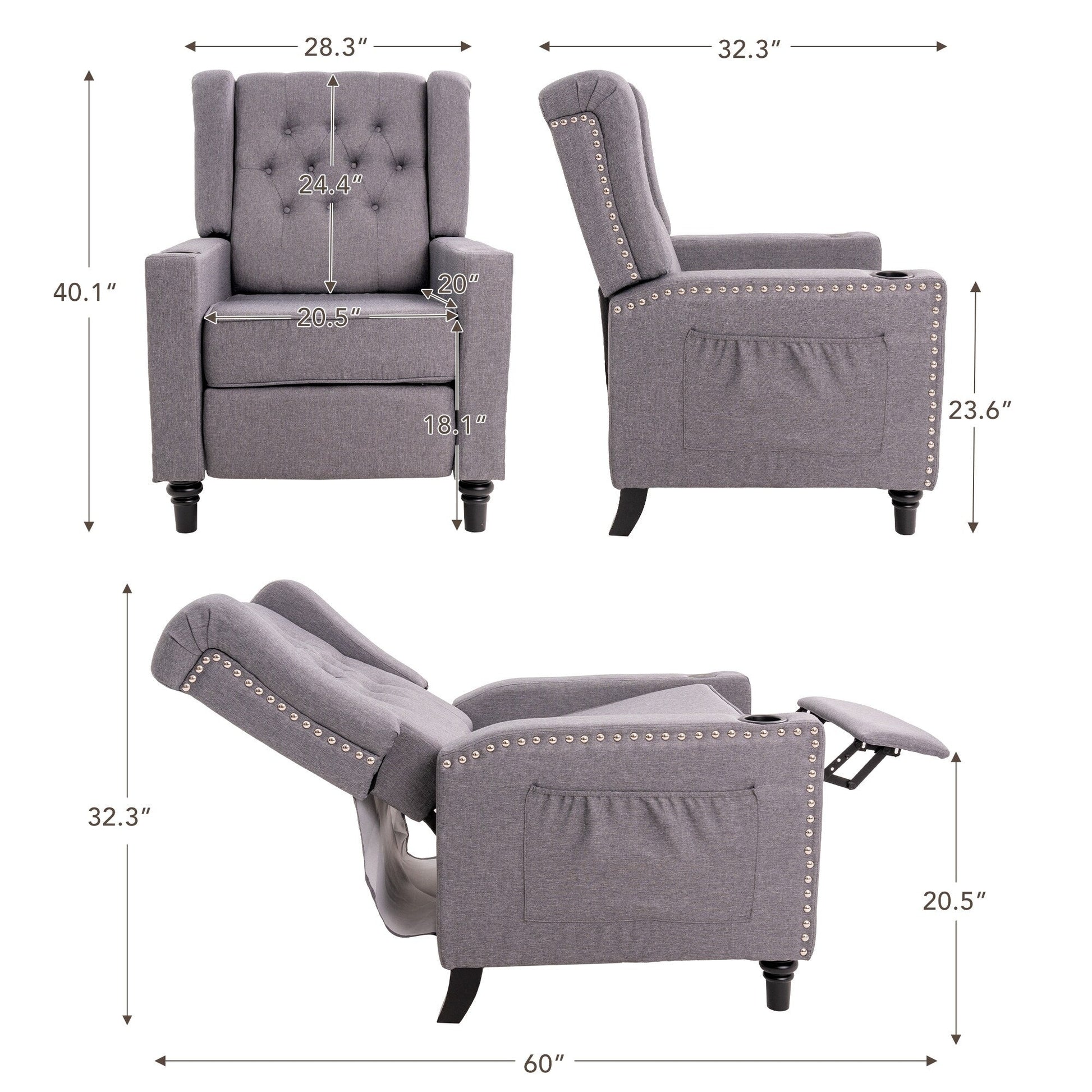 Poltrona reclinabile con schienale ad ala regolabile, poltrona con testa di chiodo, poltrona imbottita grande