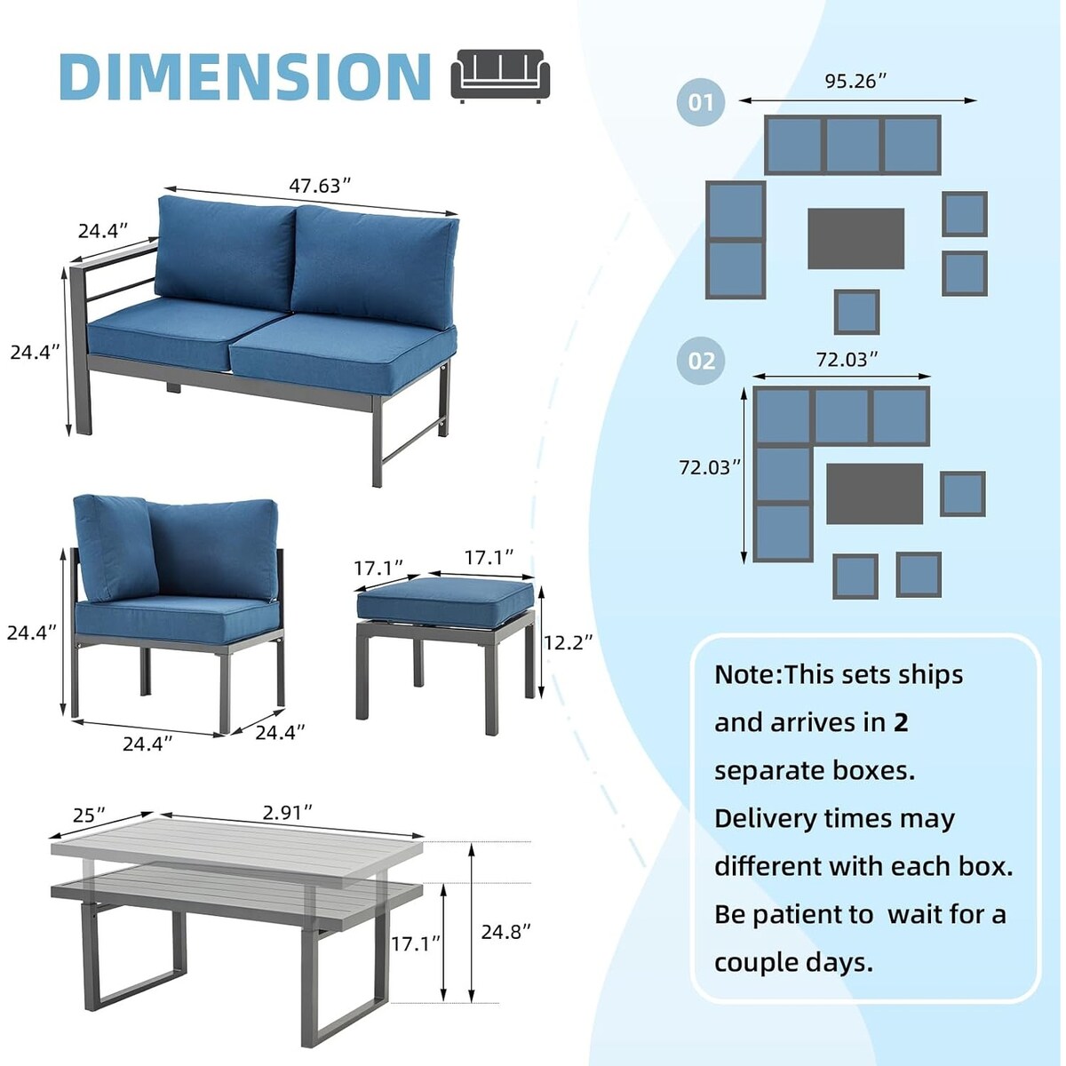 AECOJOY Set di mobili da giardino in alluminio,...