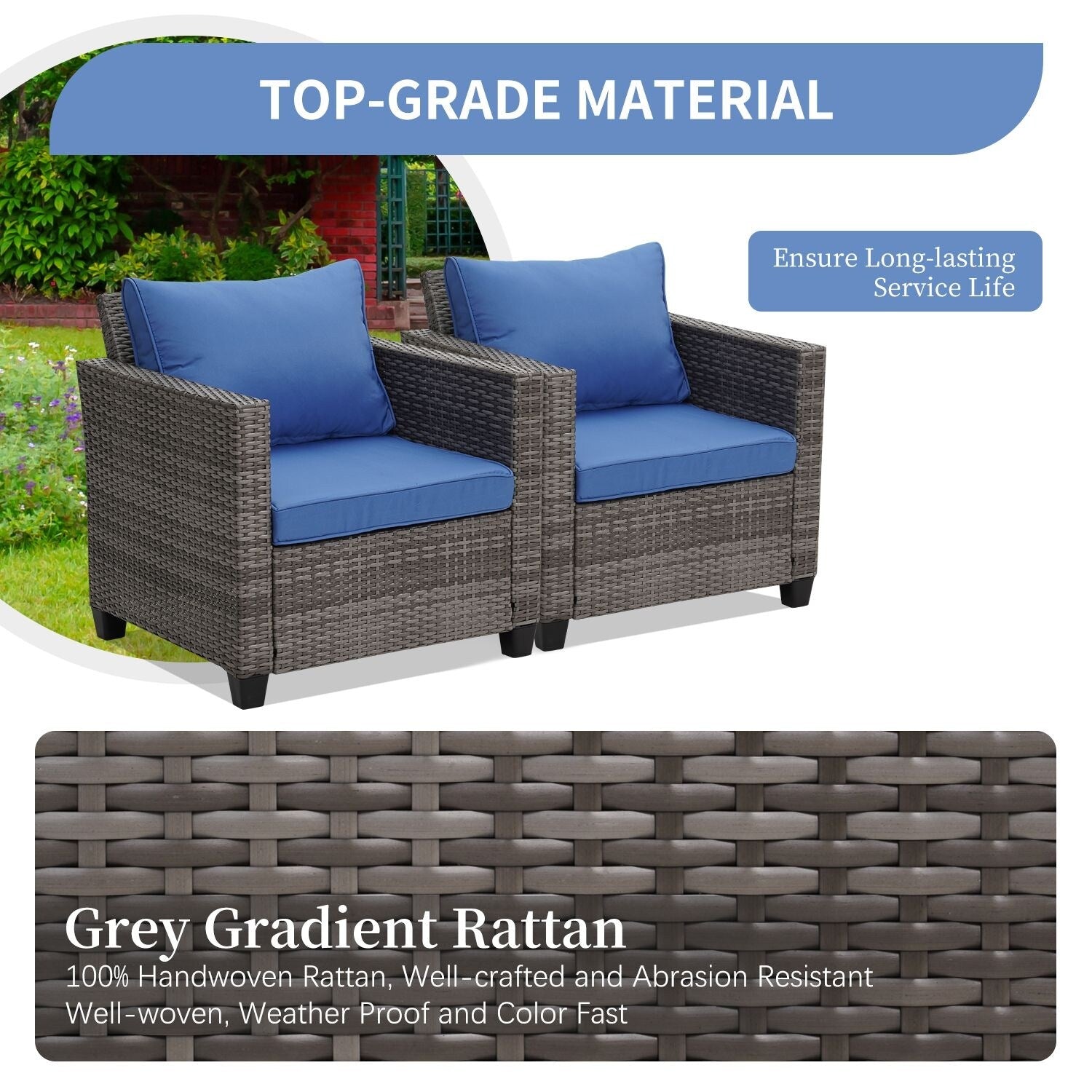 Progetta il tuo spazio esterno ideale con il set di mobili da giardino. Caratterizzato da una struttura in vimini intrecciato a quattro linee su una robusta struttura in acciaio verniciato a polvere, questo set è costruito per durare. Il design impermeabile e resistente ai raggi UV garantisce che ruggine e danni non saranno un problema. I robusti telai in acciaio offrono una costruzione superiore, una finitura impeccabile e praticità. Il nostro set di mobili da giardino è elegante, facile da pulire, perfetto per appartamento, patio, veranda, cortile, balcone, bordo piscina, giardino, prato, bistrot, veranda e altri spazi domestici ed esterni. È richiesto il montaggio.