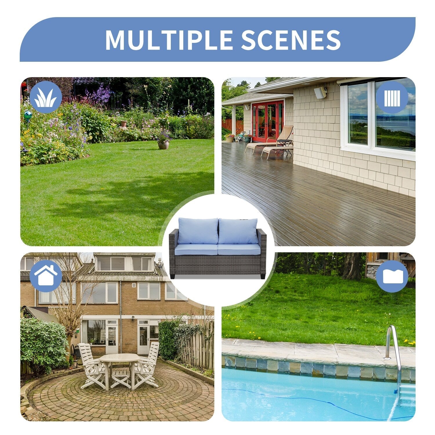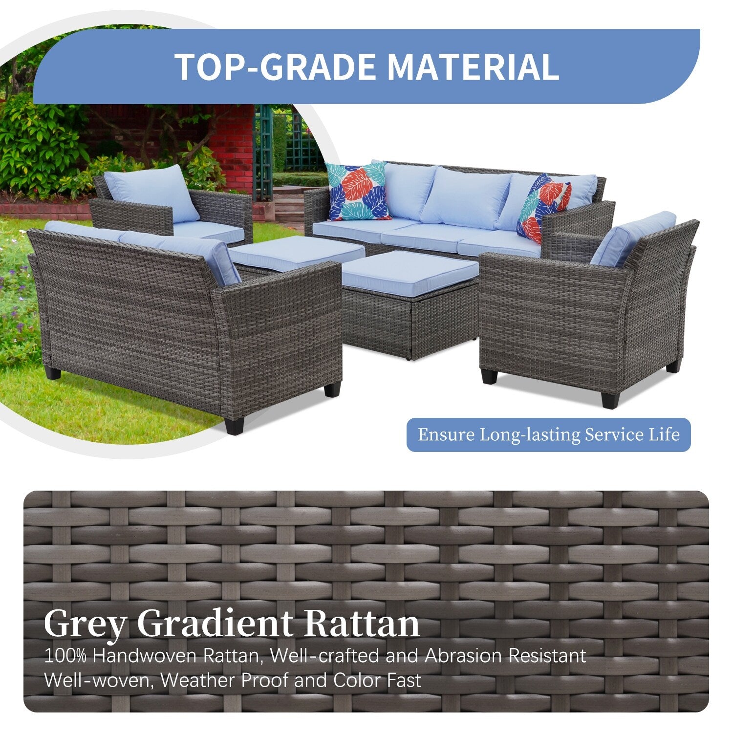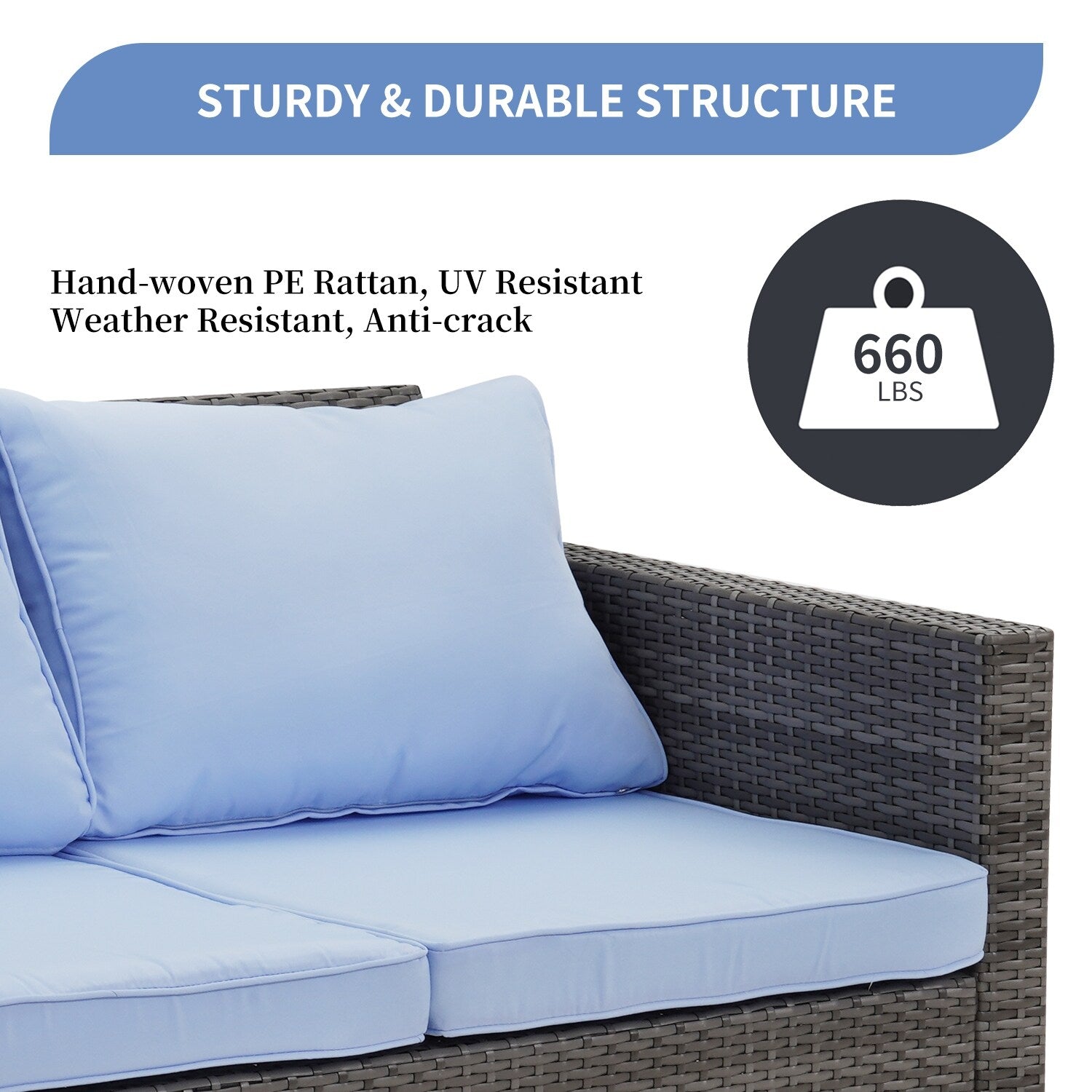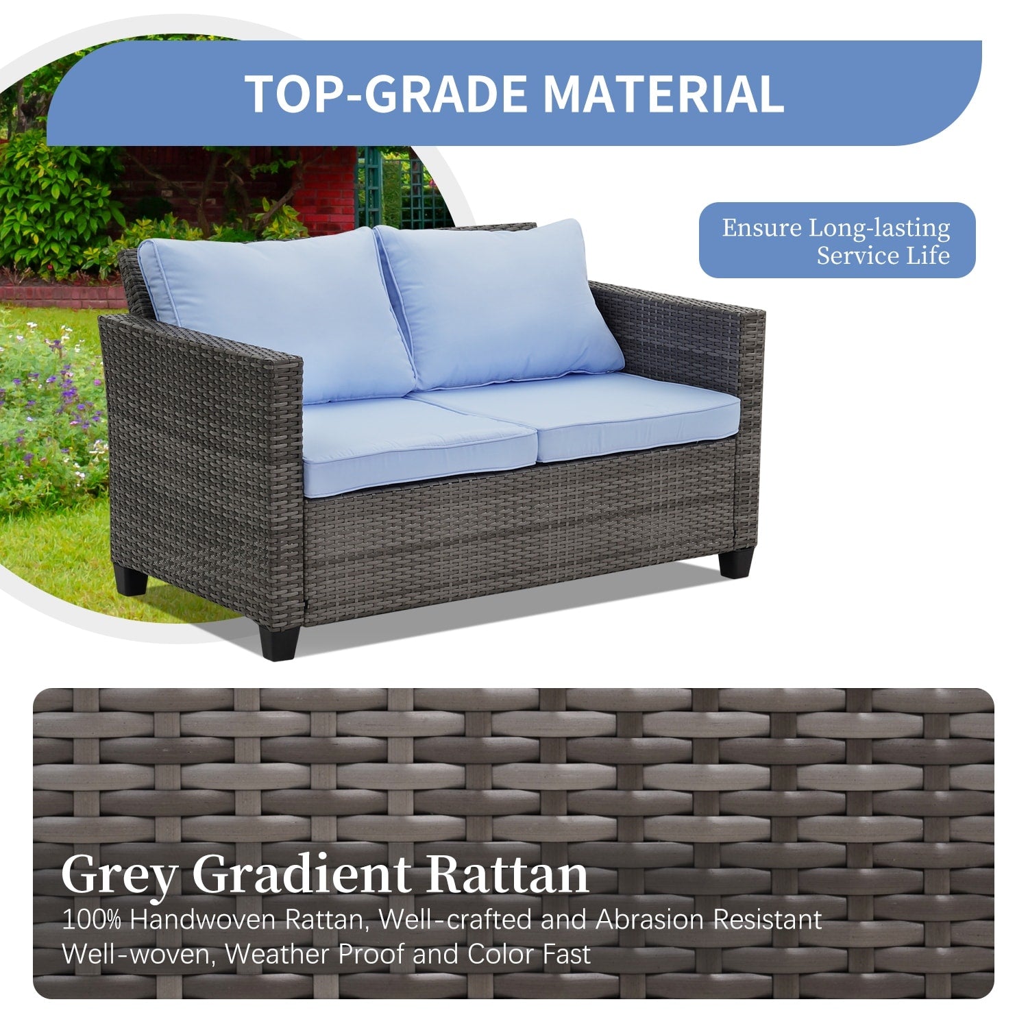 • Si prega di riporre i cuscini all'interno o di coprire il divano con una fodera impermeabile quando non in uso per una maggiore durata.