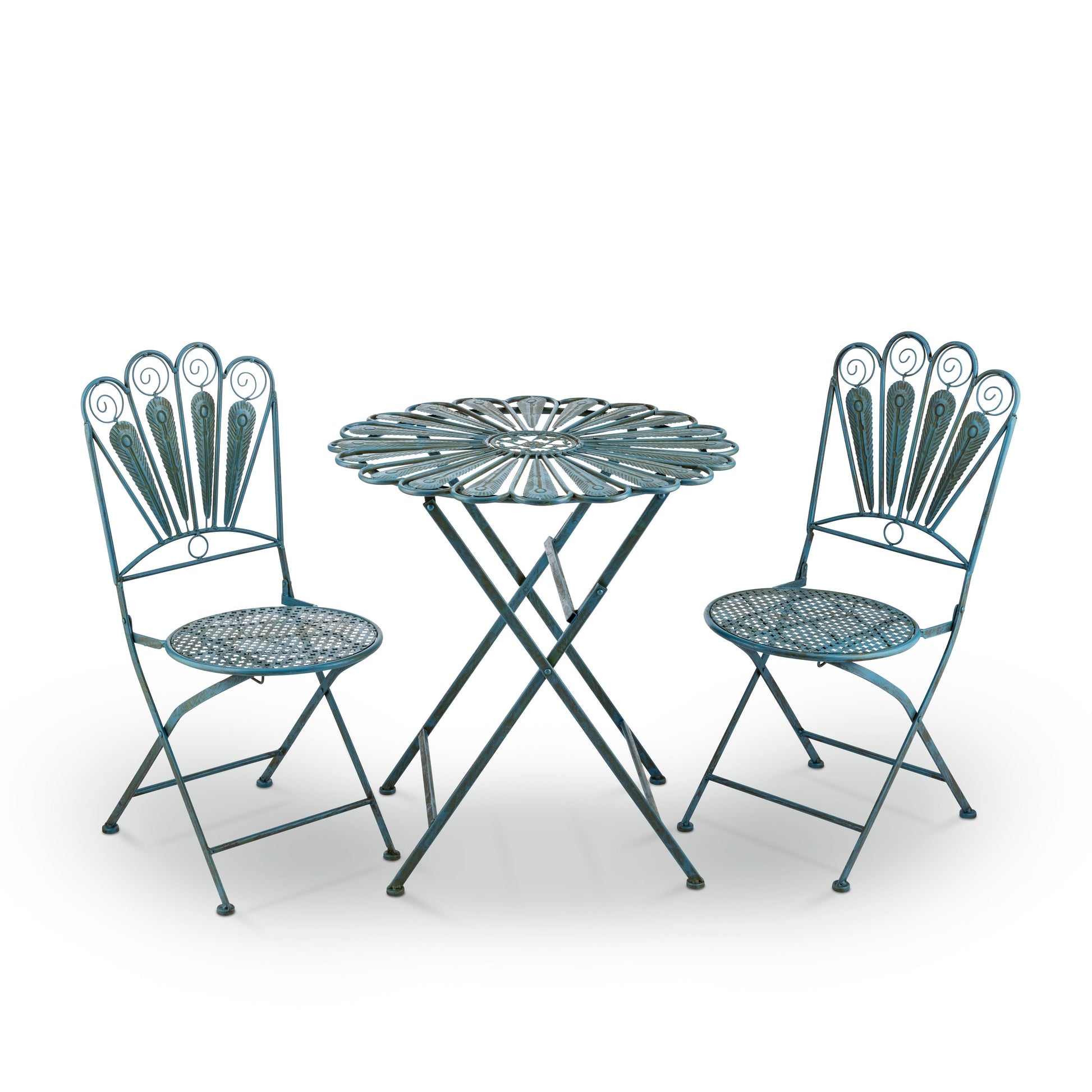 Set da bistrot in metallo rustico con piume...