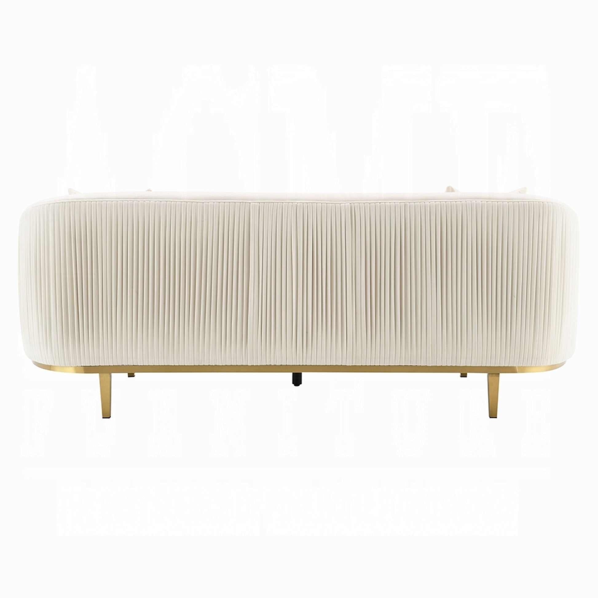 Divano Artina, 2 cuscini decorativi, velluto avorio, metallo dorato, 89 pollici