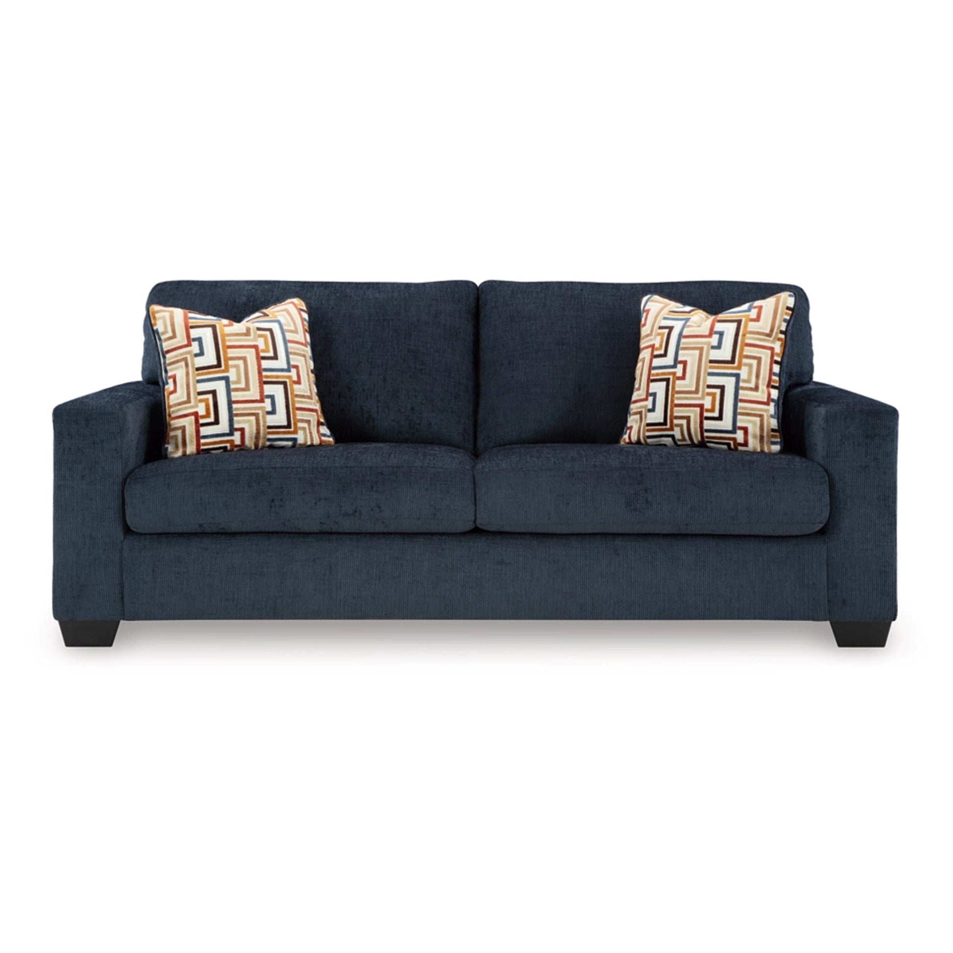 Divano letto matrimoniale Avie, 2 cuscini decorativi, poliestere blu navy, 85 pollici
