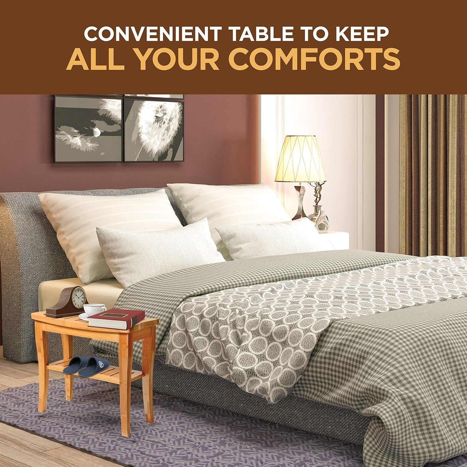 Sgabello da doccia in bambù per spa - Seduta in legno a 2 livelli, poggiapiedi, sgabello da barba con piedini antiscivolo + ripiano portaoggetti