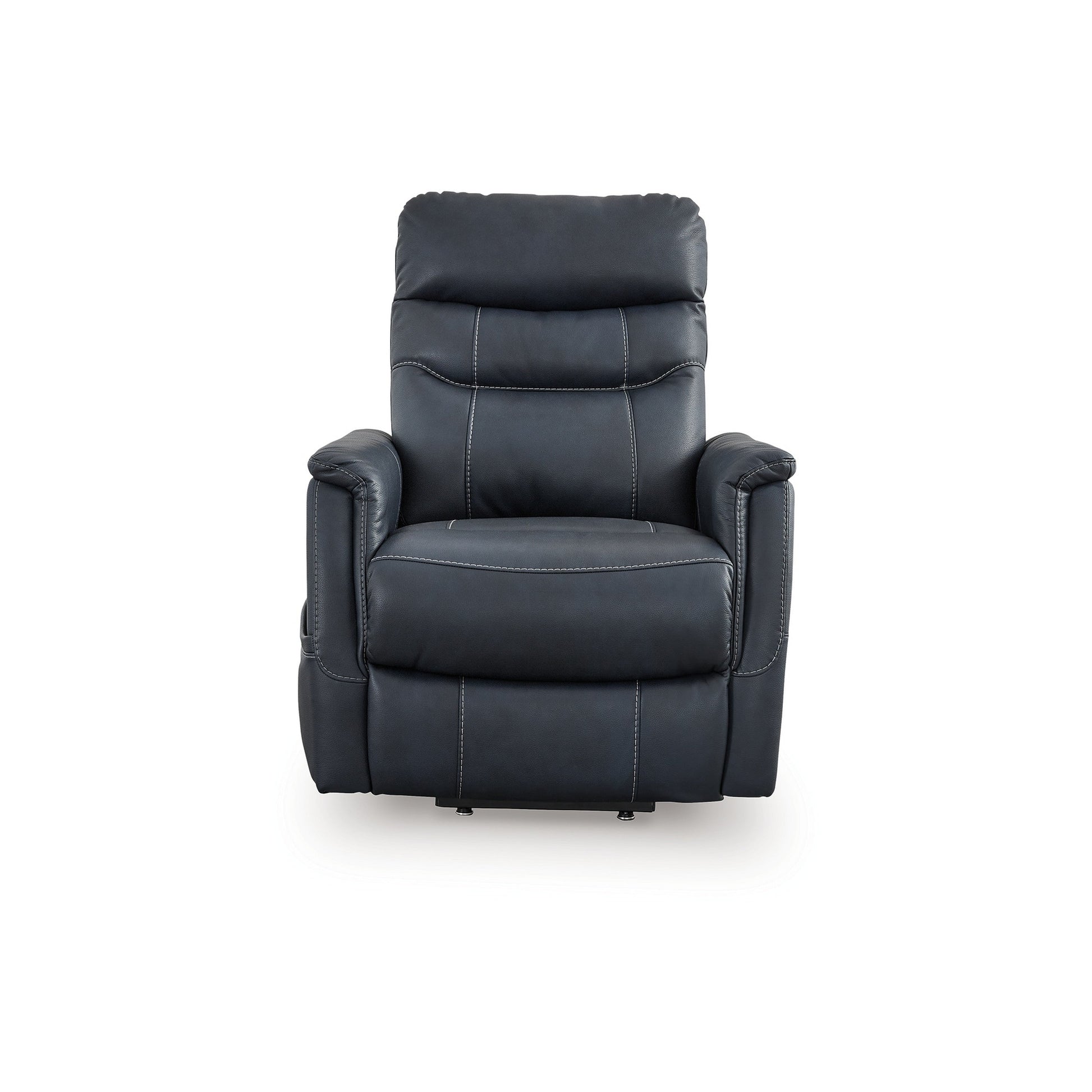 Poltrona reclinabile elettrica Barrett, similpelle blu navy, schienale con cuscino