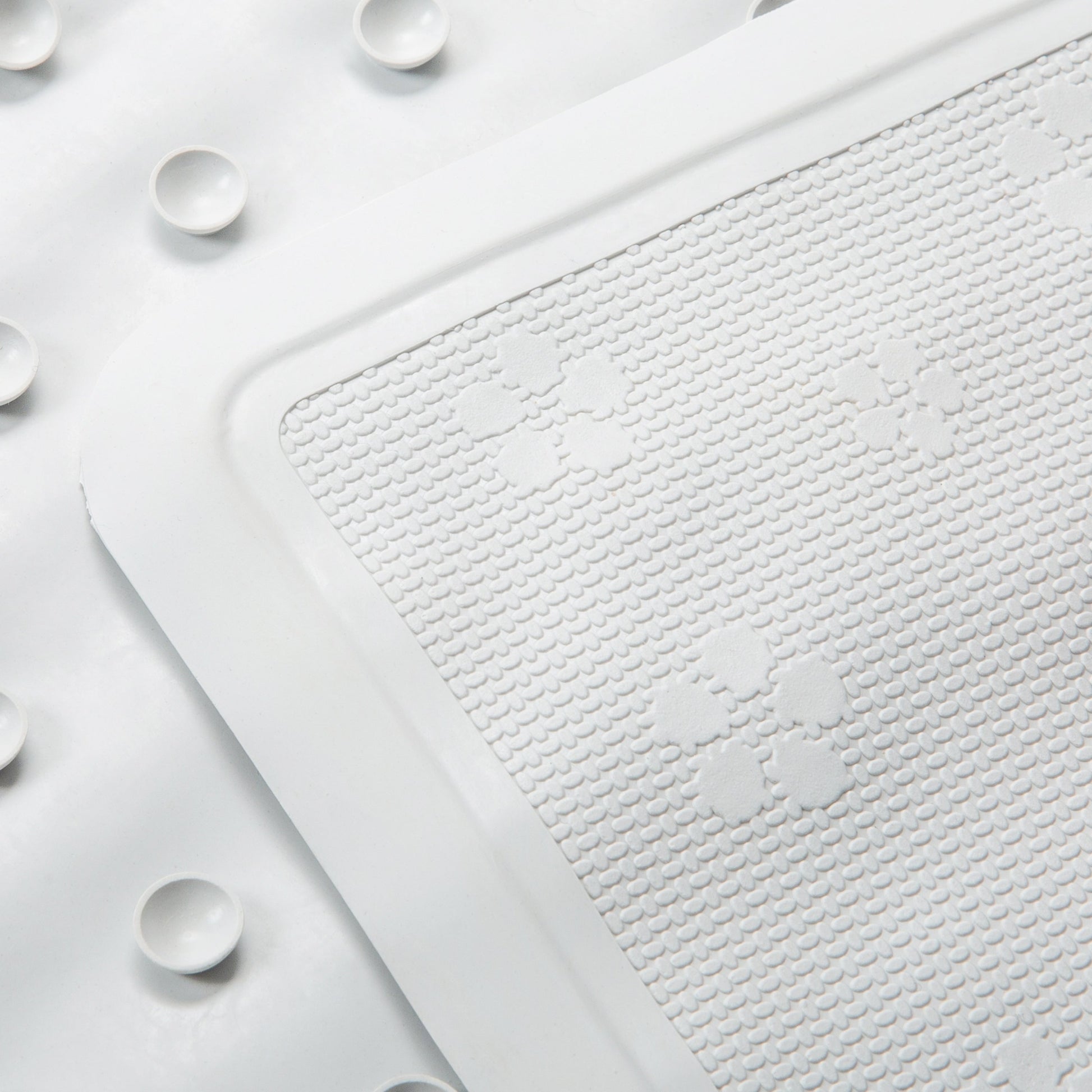 Mantieni la tua famiglia al sicuro con questo tappetino da bagno antiscivolo Bath Bliss. Grazie alla sua superficie antiscivolo testurizzata, cadute e scivolamenti sono evitati nella vasca da bagno o nella doccia. Il materiale in gomma previene la formazione di muffa, mantenendo il bagno fresco e pulito. Il design bianco fa sì che questo tappetino si integri perfettamente con l'arredamento del tuo bagno. Questo tappetino da bagno è progettato per garantire sicurezza, comfort e durata.