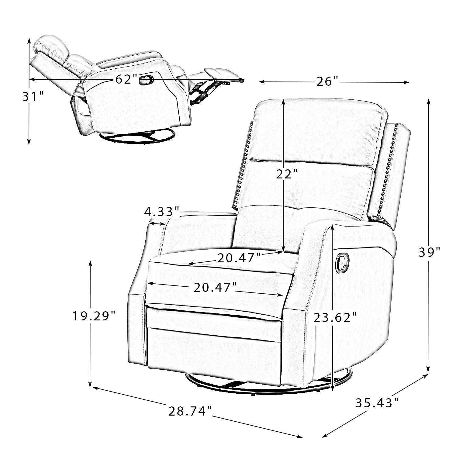 • Design classico: questa poltrona reclinabile presenta un design capitonné, finiture con borchie e uno schienale di altezza moderata che cattura l'attenzione. Questa poltrona reclinabile aggiorna il design per distinguerti come un intenditore di mobili.