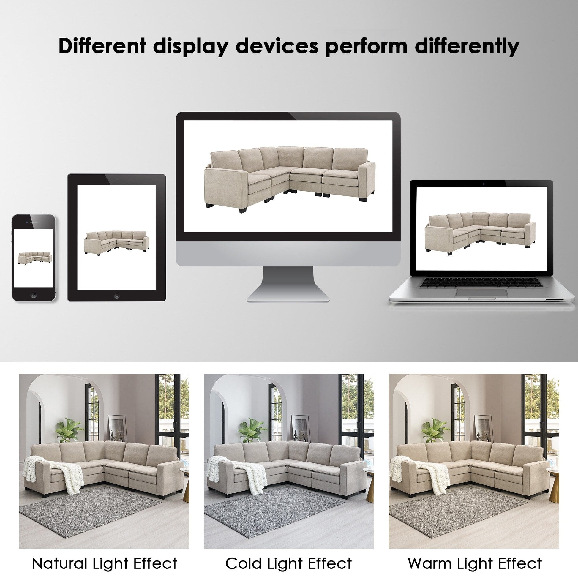 Divano componibile a L in velluto beige da 89'' a 5 posti con doppi cuscini, struttura in legno robusto e ferro