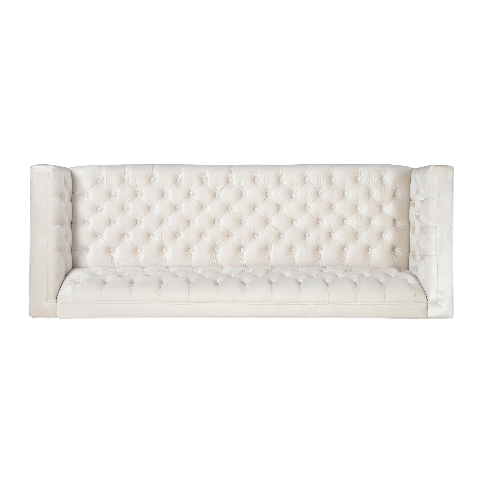 Divano moderno beige 86,75 in similpelle con bottoni, trapuntato, gambe in ferro lisce a forma di T per soggiorno