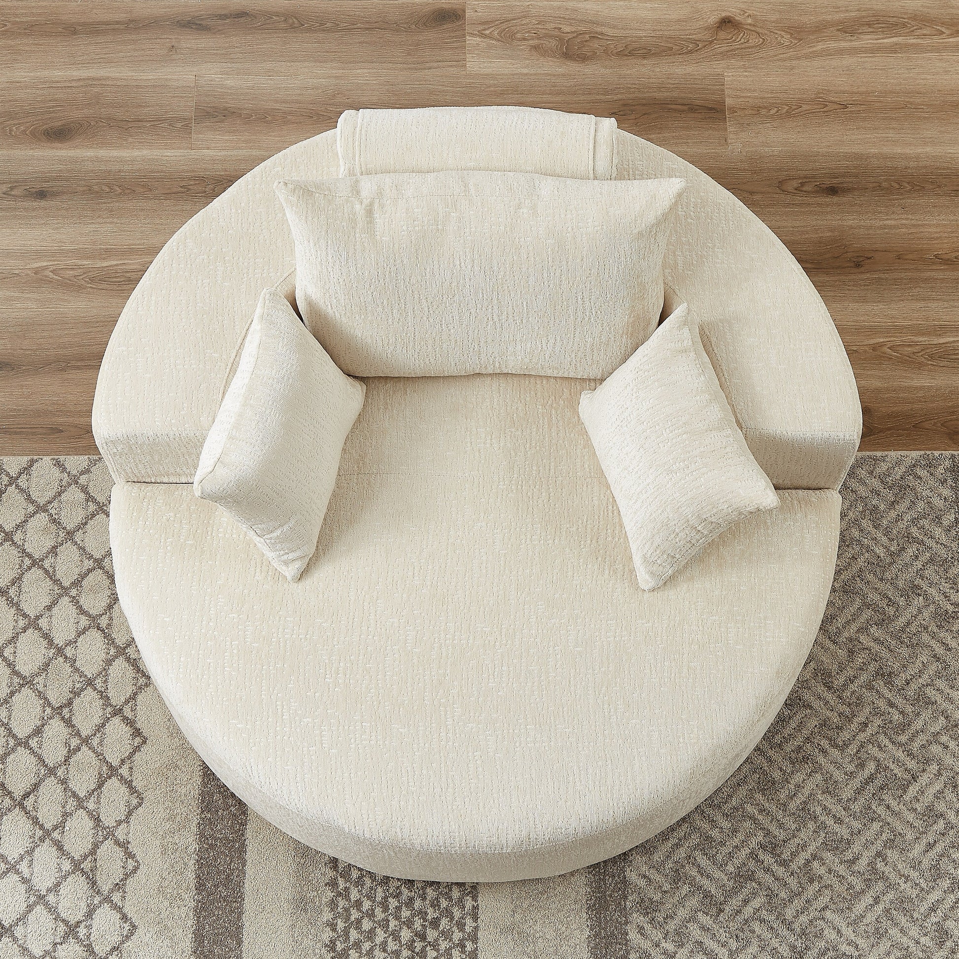Divano letto singolo rotondo beige in ciniglia con cuscino per schienale