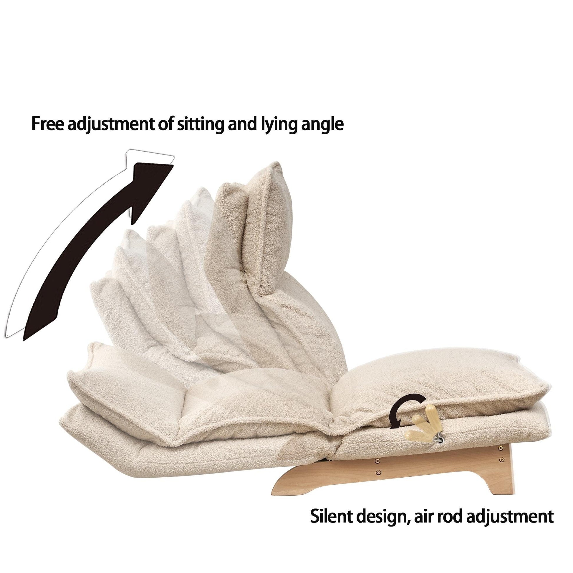 Sedia da pavimento multifunzionale: ideale per diversi spazi come soggiorno, camera da letto e balcone, questa sedia è perfetta per leggere, giocare, guardare la TV, meditare o lavorare a letto. L'asta pneumatica semiautomatica consente la regolazione dell'angolazione desiderata, in linea con i principi del design ergonomico. Le sezioni della testa e della vita possono essere regolate per adattarsi a qualsiasi angolazione desiderata per sedersi o sdraiarsi.