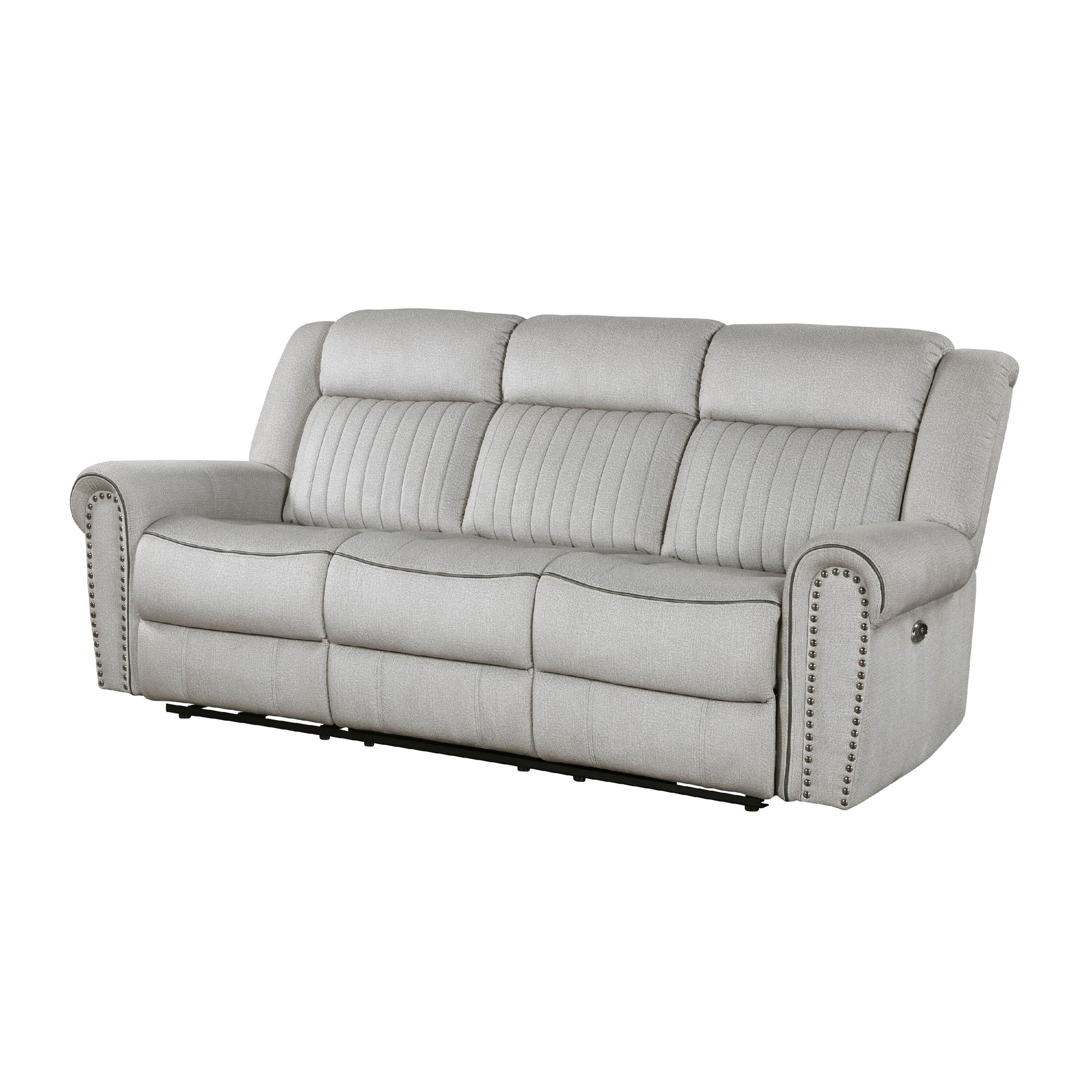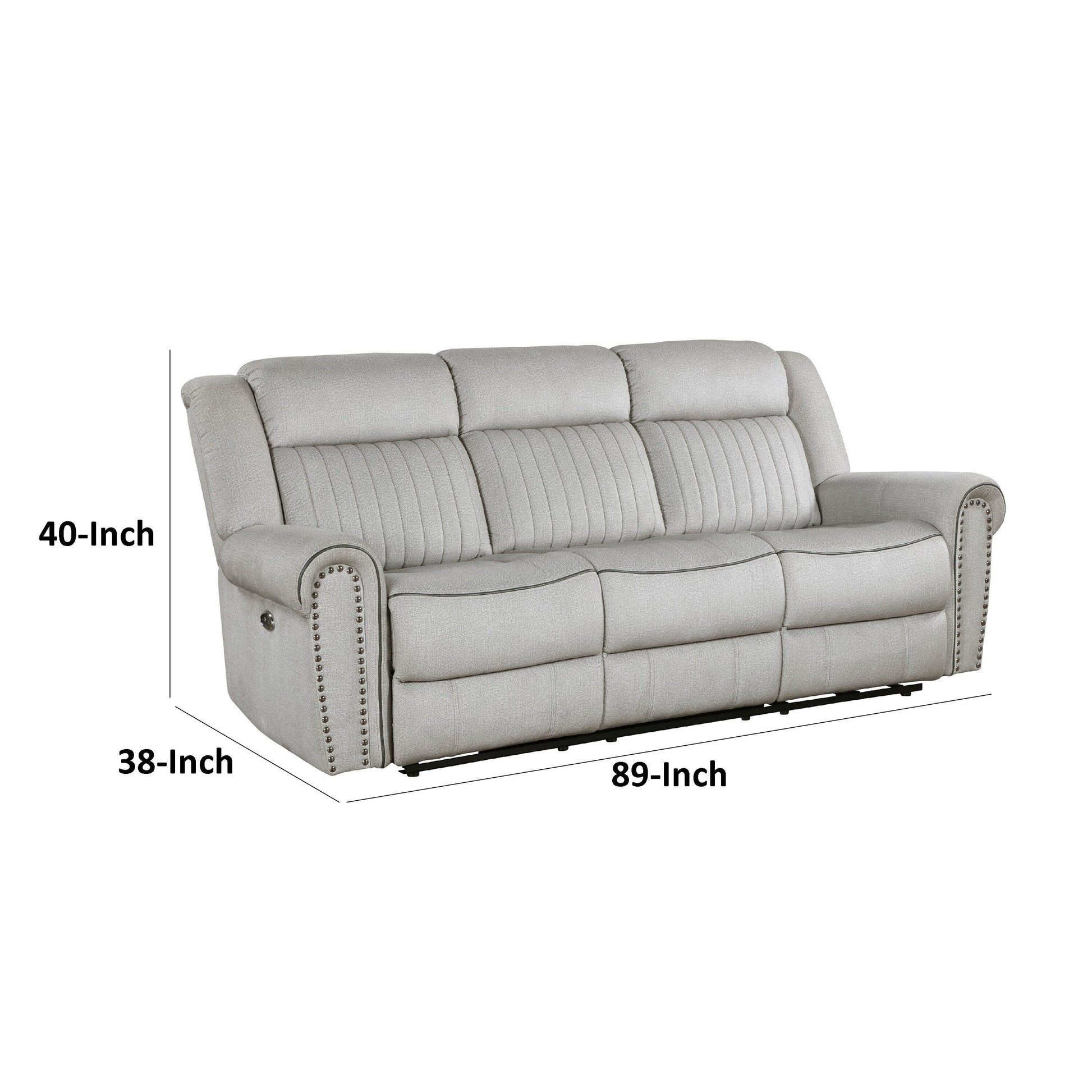 Divano reclinabile Ben Power, 89 pollici, microfibra grigia, finiture con borchie