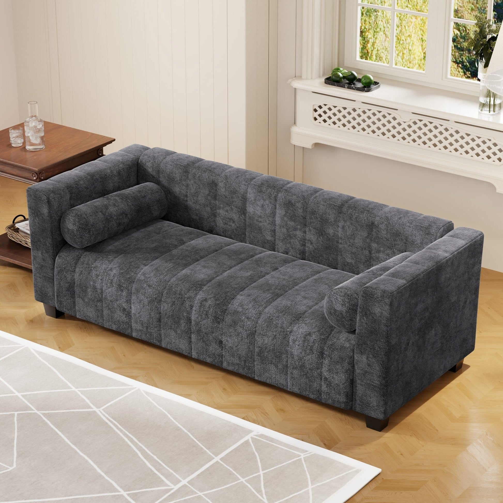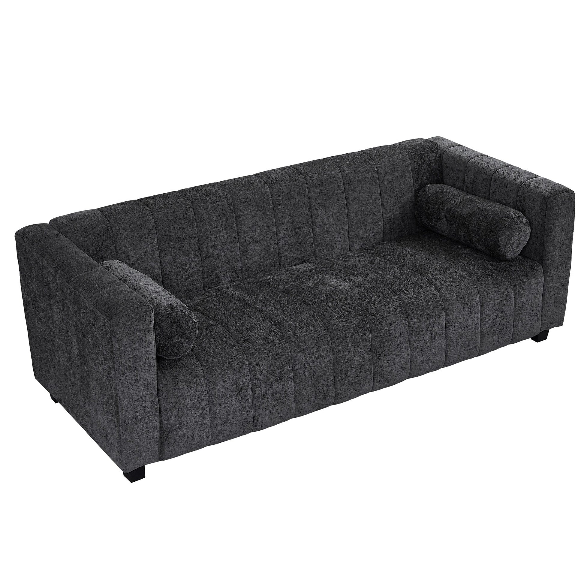 Divano a 3 posti imbottito in ciniglia nera da 78,7'' con seduta extra-large e cuscini rimovibili