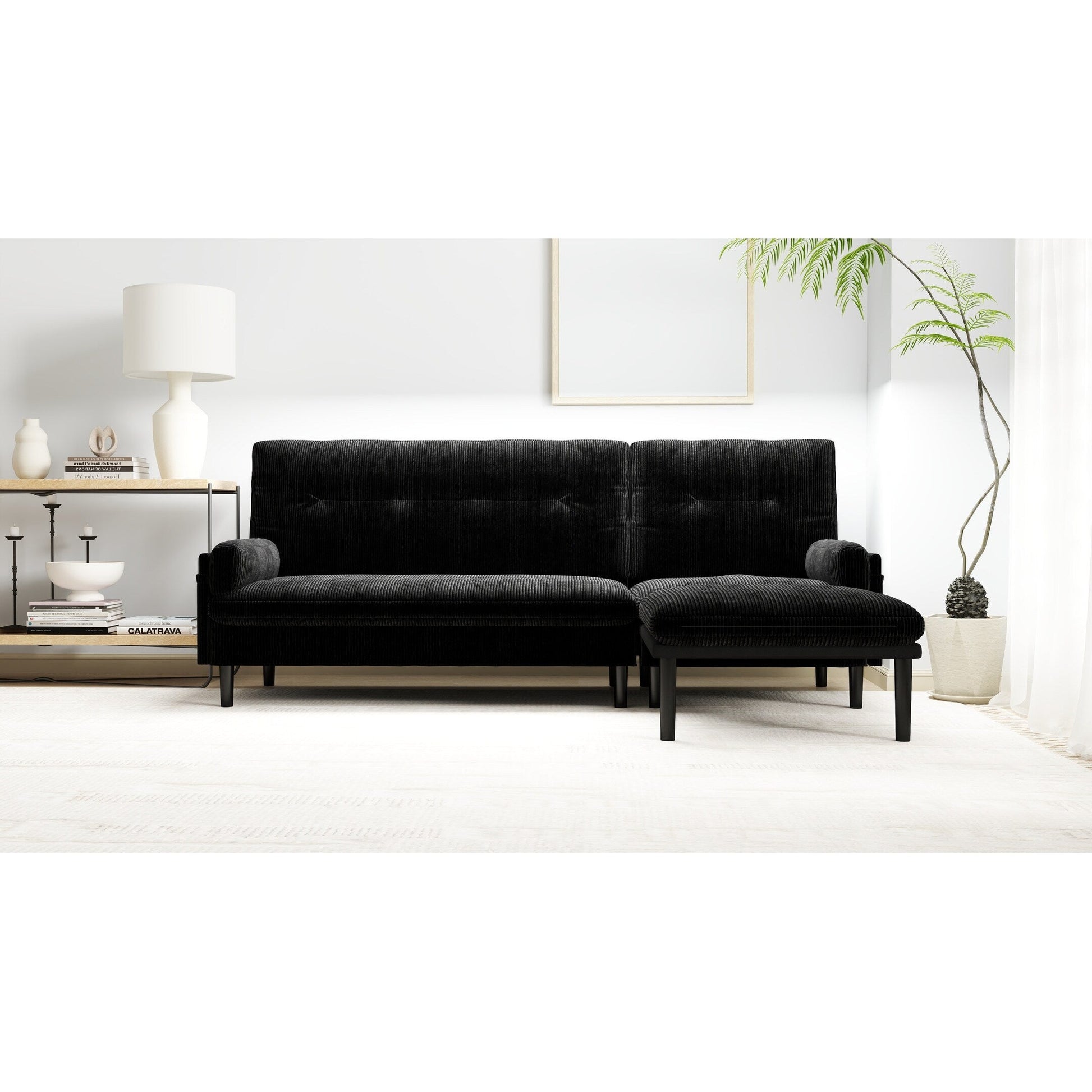 Divano a 3 posti in velluto a coste regolabile multifunzionale nero 80.7, divano a L convertibile e letto per gli ospiti