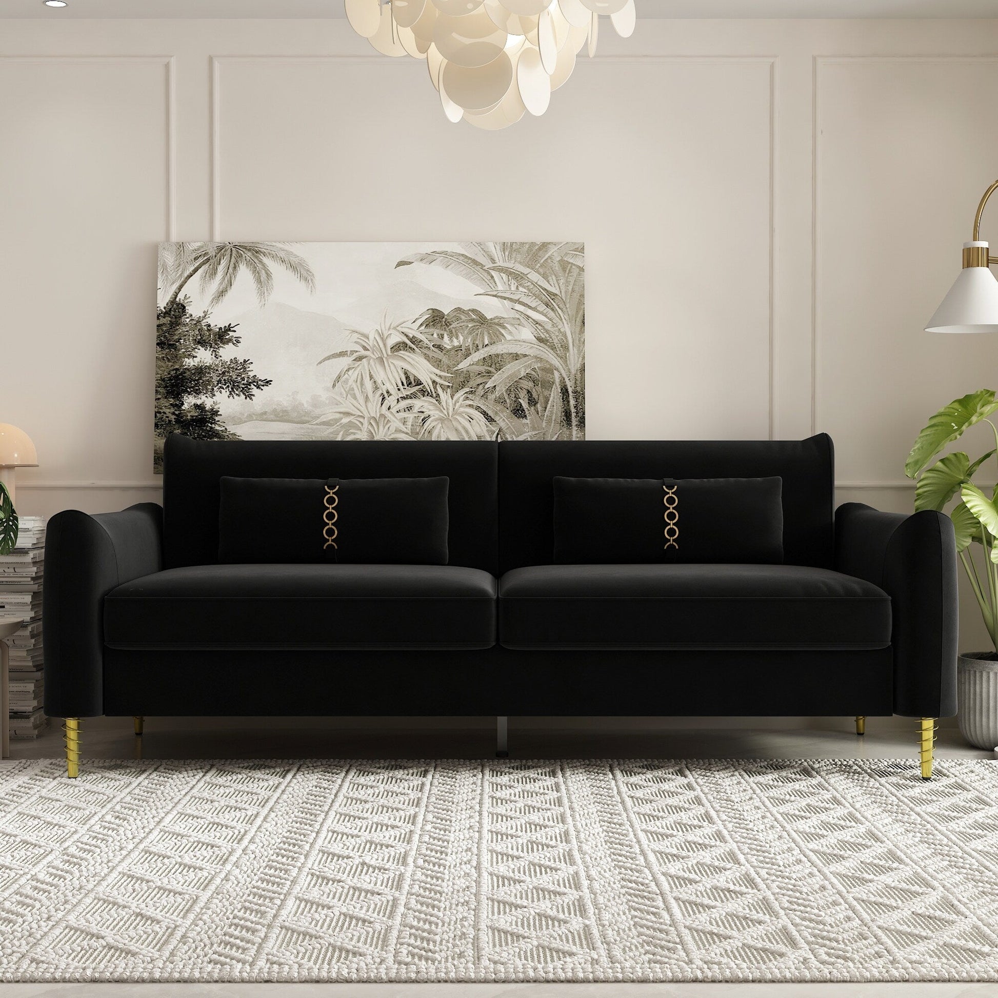 Divano a due posti in velluto nero moderno 85.43 con gambe e cuscini dorati per il soggiorno