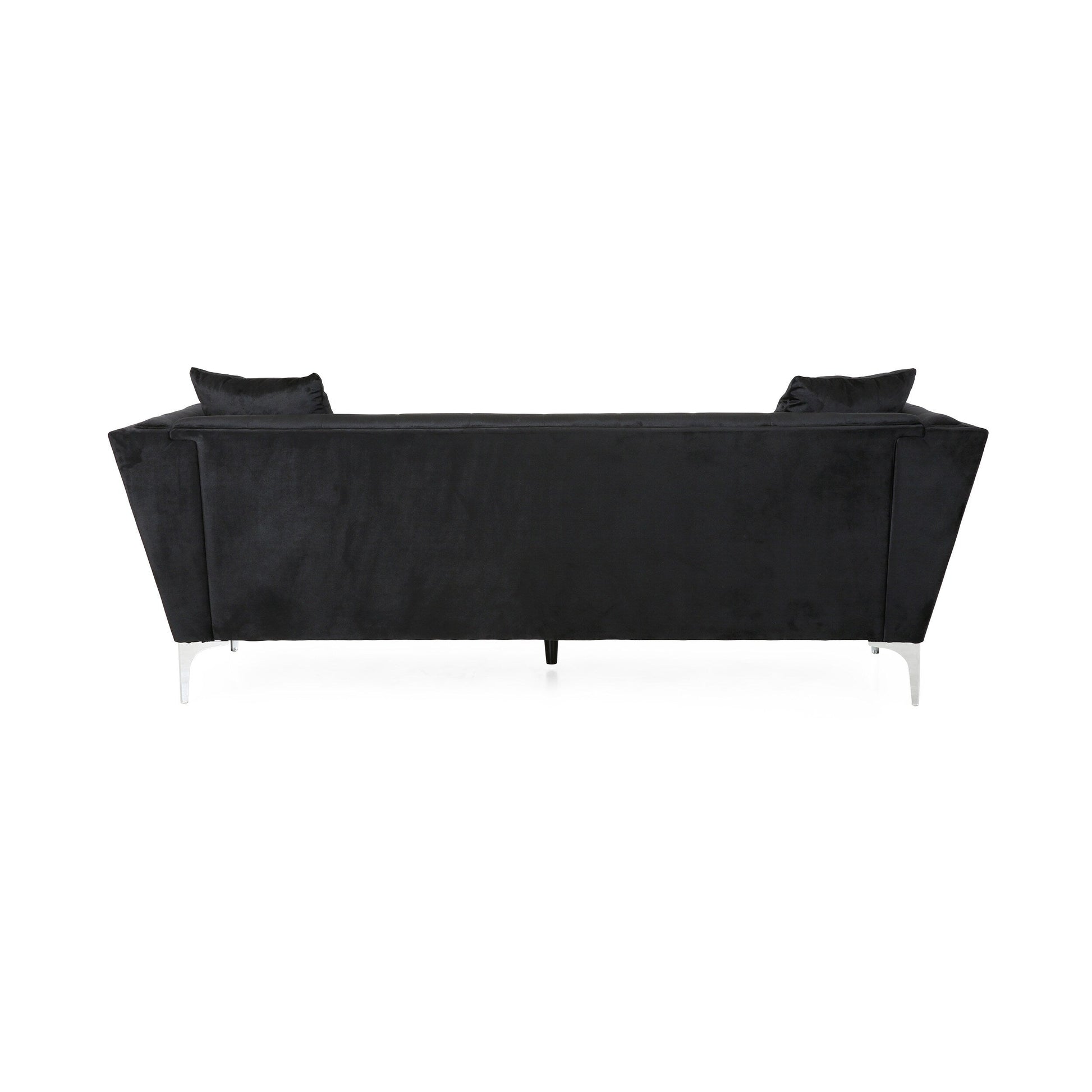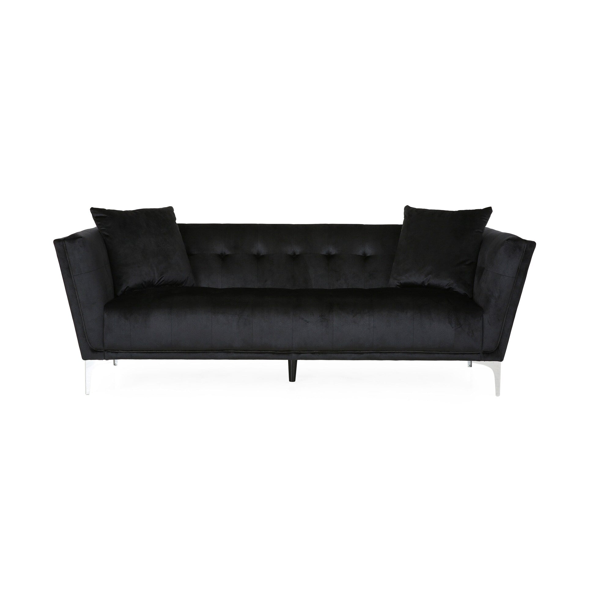 Divano moderno in velluto nero 86,75 a 3 posti con cuscini e struttura robusta per soggiorno