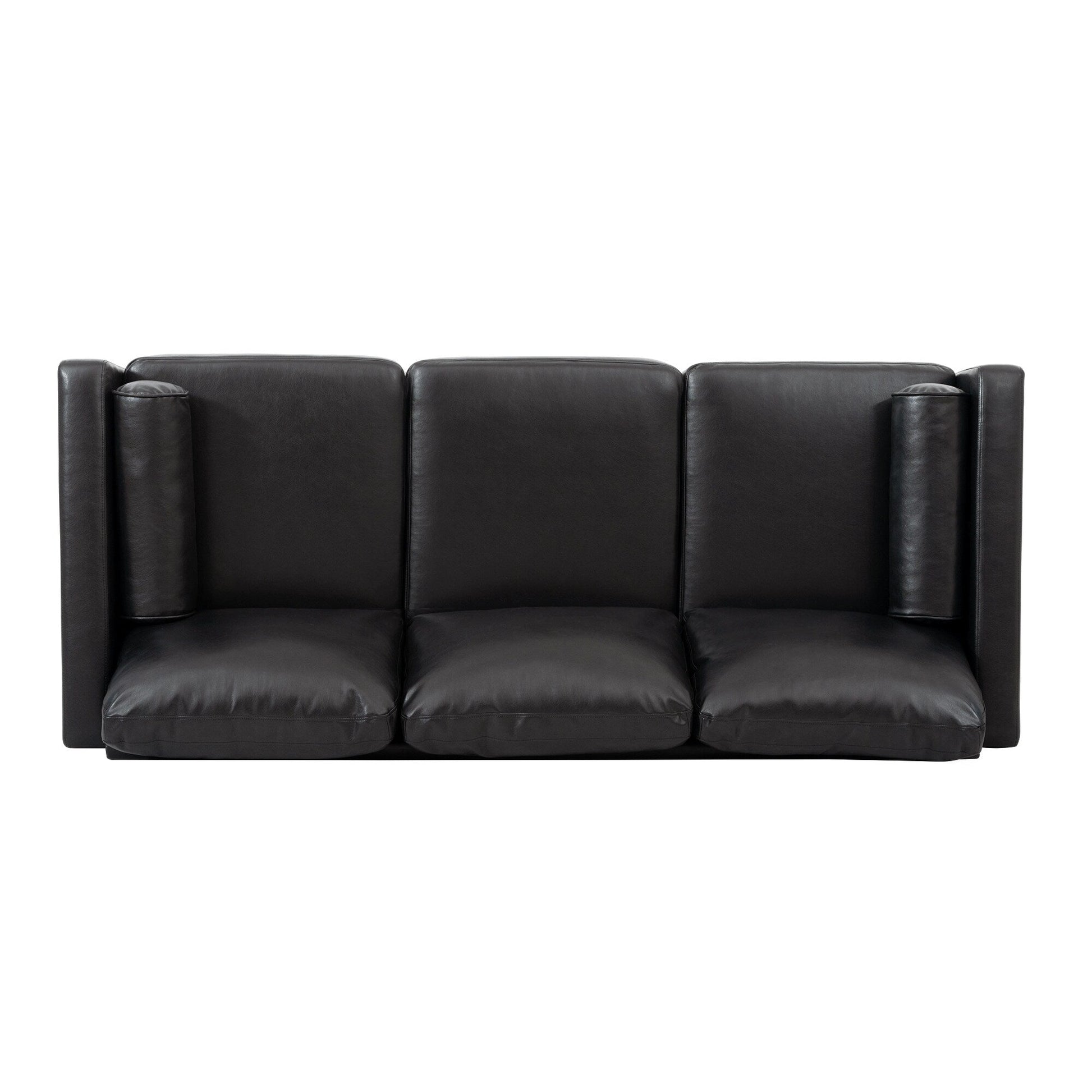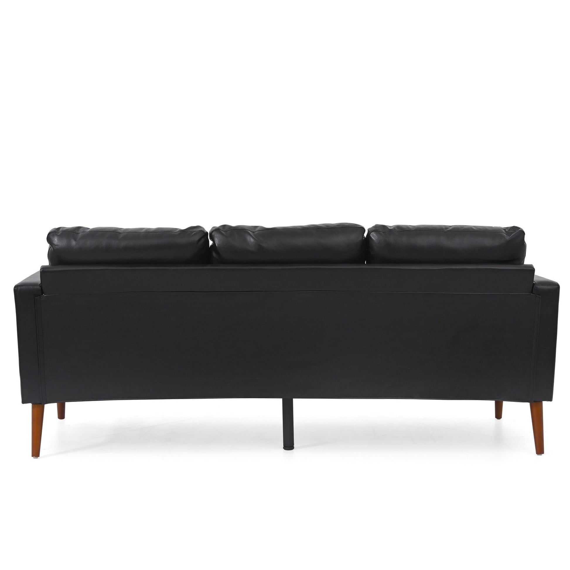 Divano a 3 posti in PU nero con struttura in ferro e legno