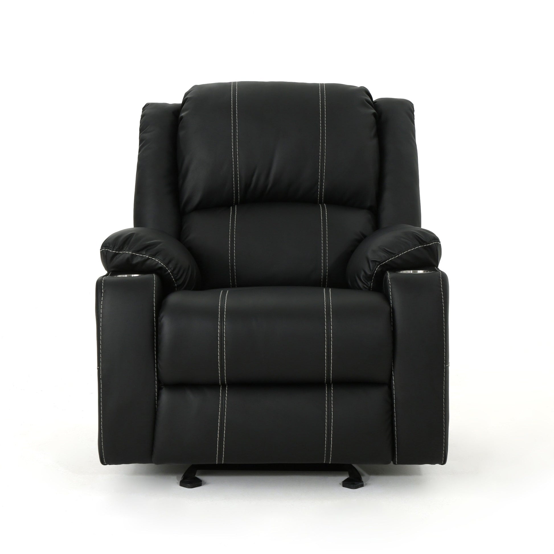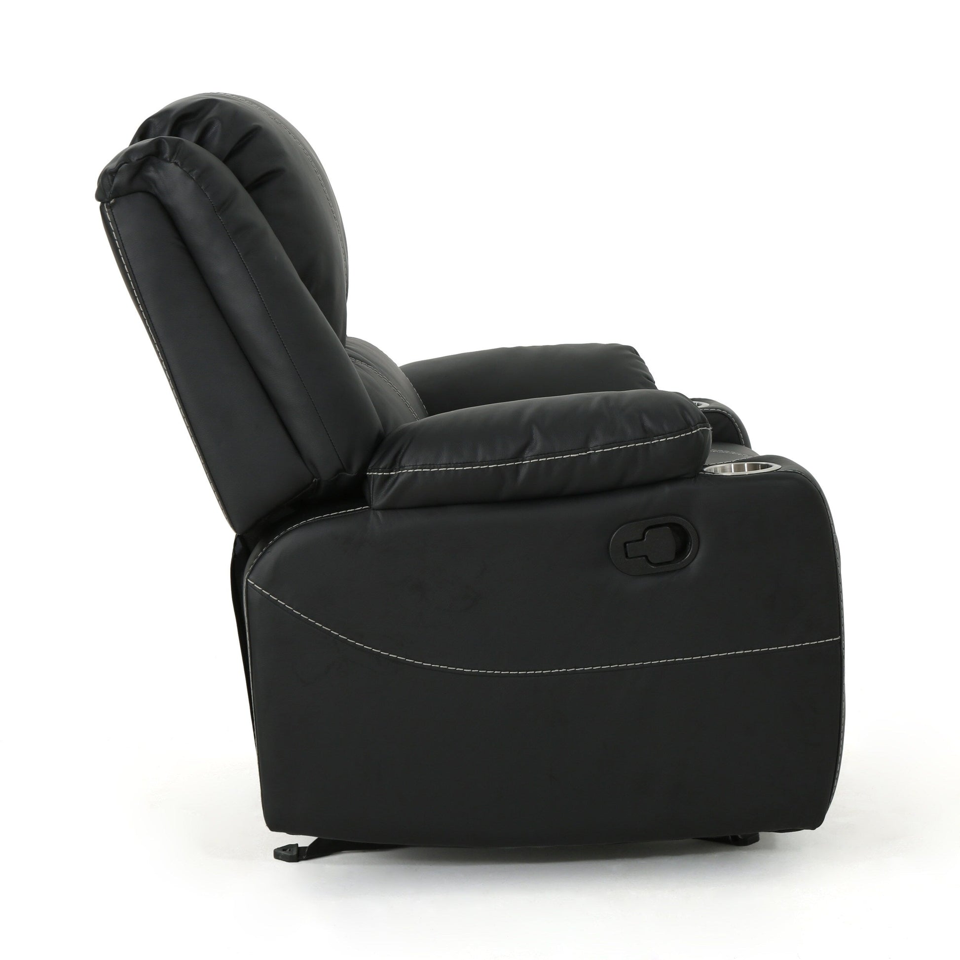 Poltrona reclinabile in similpelle nera con portabicchieri in acciaio, reclinazione senza sforzo e comfort lussuoso per il relax