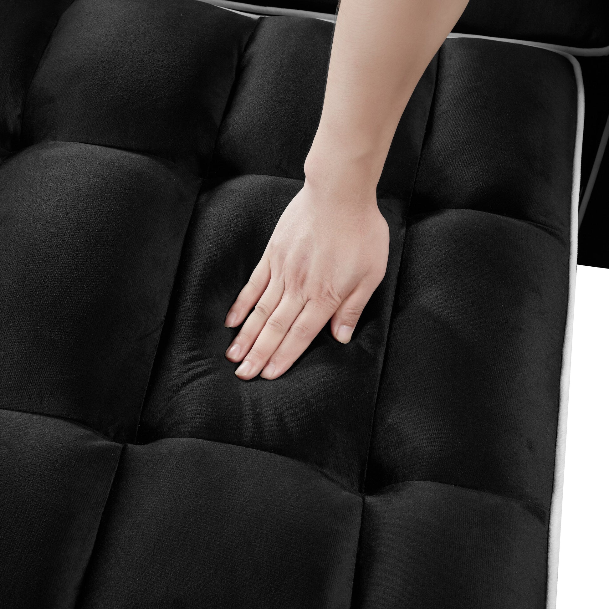 Divano letto singolo convertibile in velluto nero con porta di ricarica USB