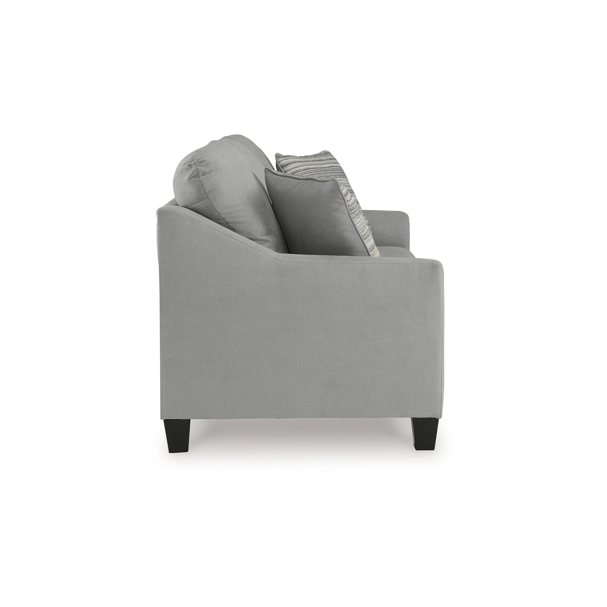 Scopri il perfetto mix di stile e comfort con questo divano realizzato con una resistente struttura ad angoli bloccati. Il suo elegante rivestimento in poliestere grigio imita l'aspetto del velluto scamosciato, offrendo una sensazione morbida ma sofisticata. Completo di cuscini in schiuma di alta qualità e rivestimento in fibra di poliestere per un comfort eccezionale, questo divano è dotato di due cuscini decorativi in ​​polyfill. Scopri la nostra collezione Blaire per saperne di più.
