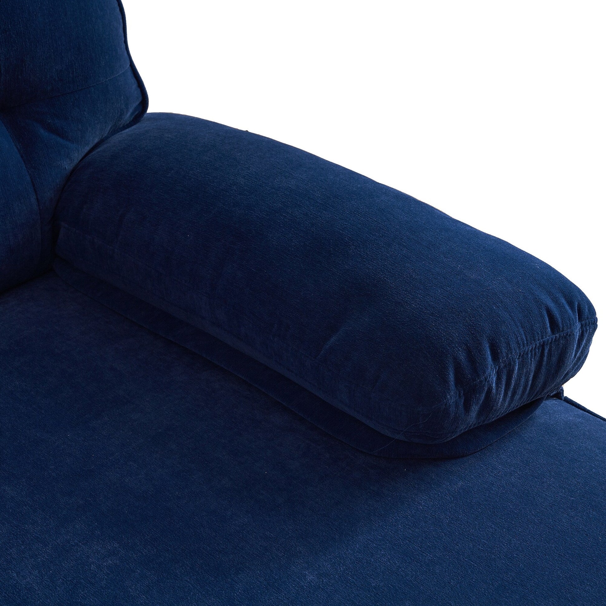 Divano componibile a 3 posti a forma di L in velluto blu da 83'', con schienale e braccioli sfoderabili, cuscini in morbida schiuma, gambe in metallo