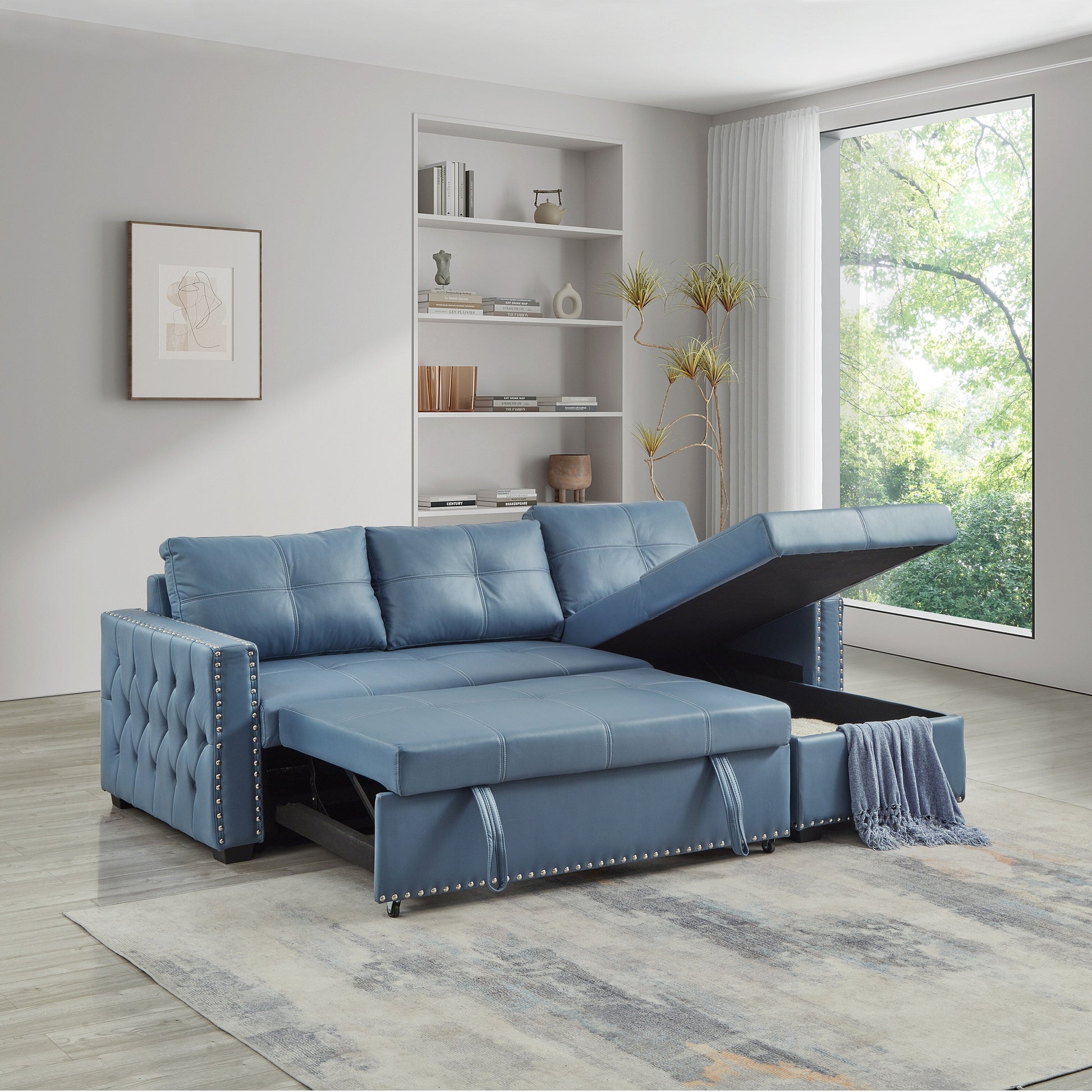 Divano letto convertibile blu da 88'' a 3...