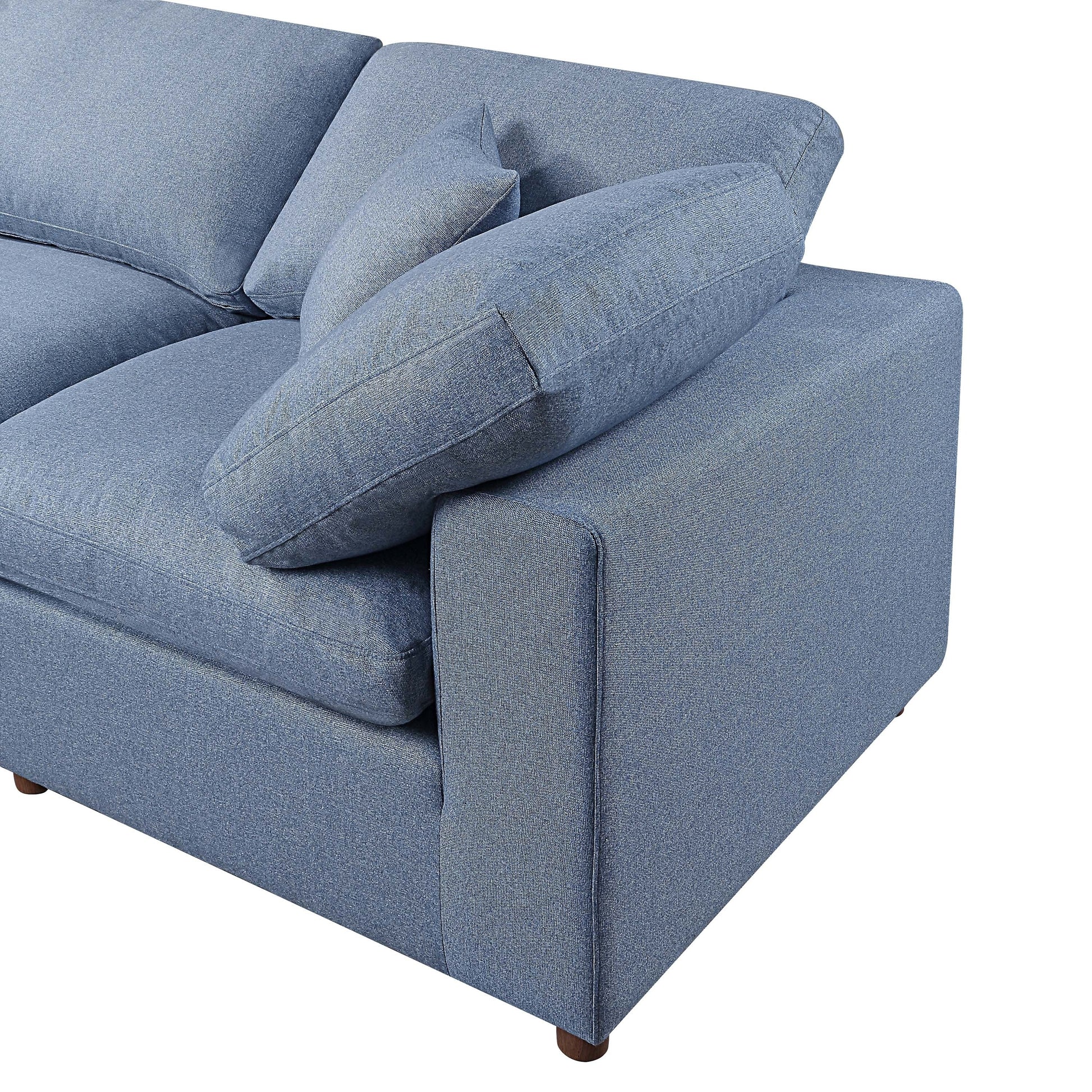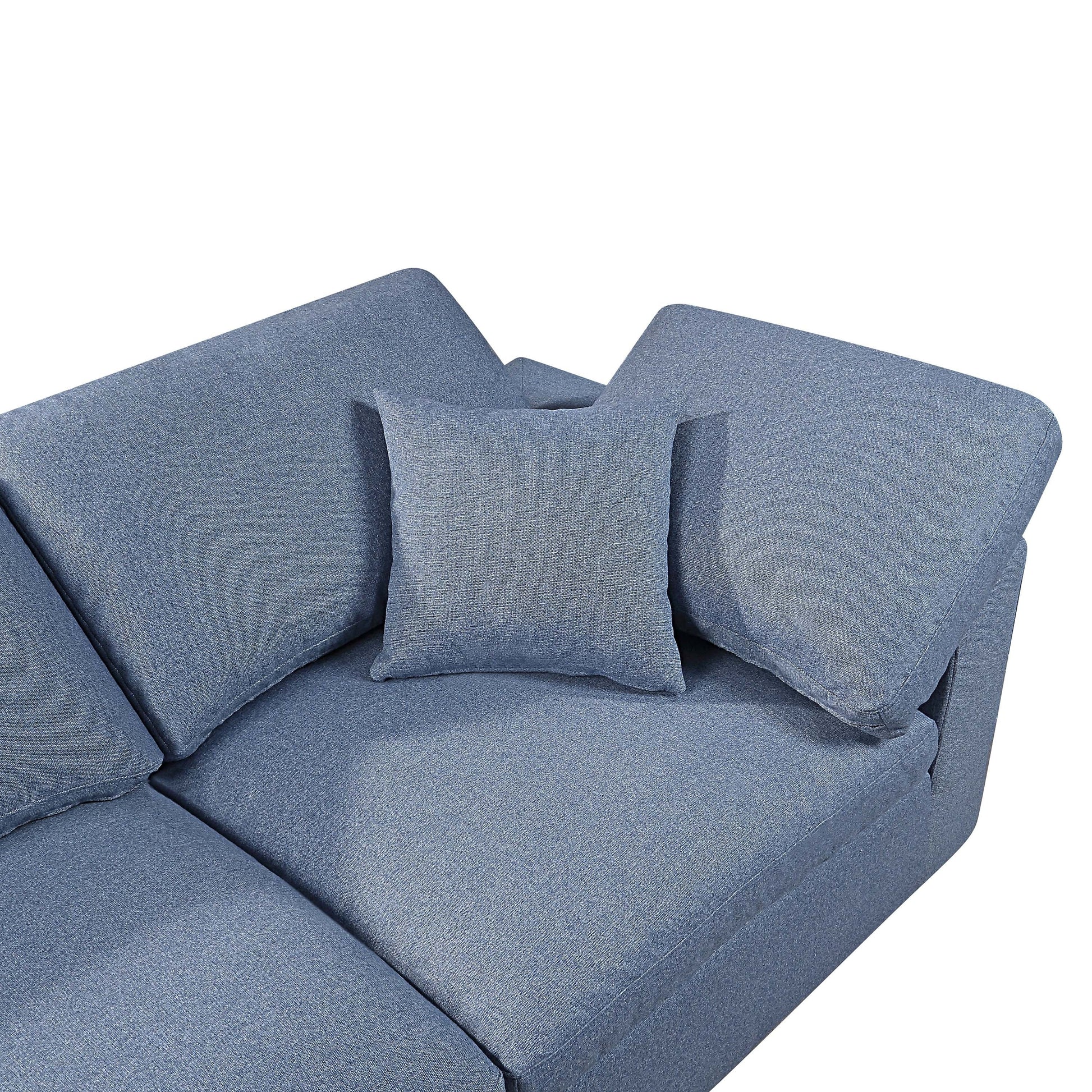 Divano componibile modulare a 4 posti in lino blu con cuscini