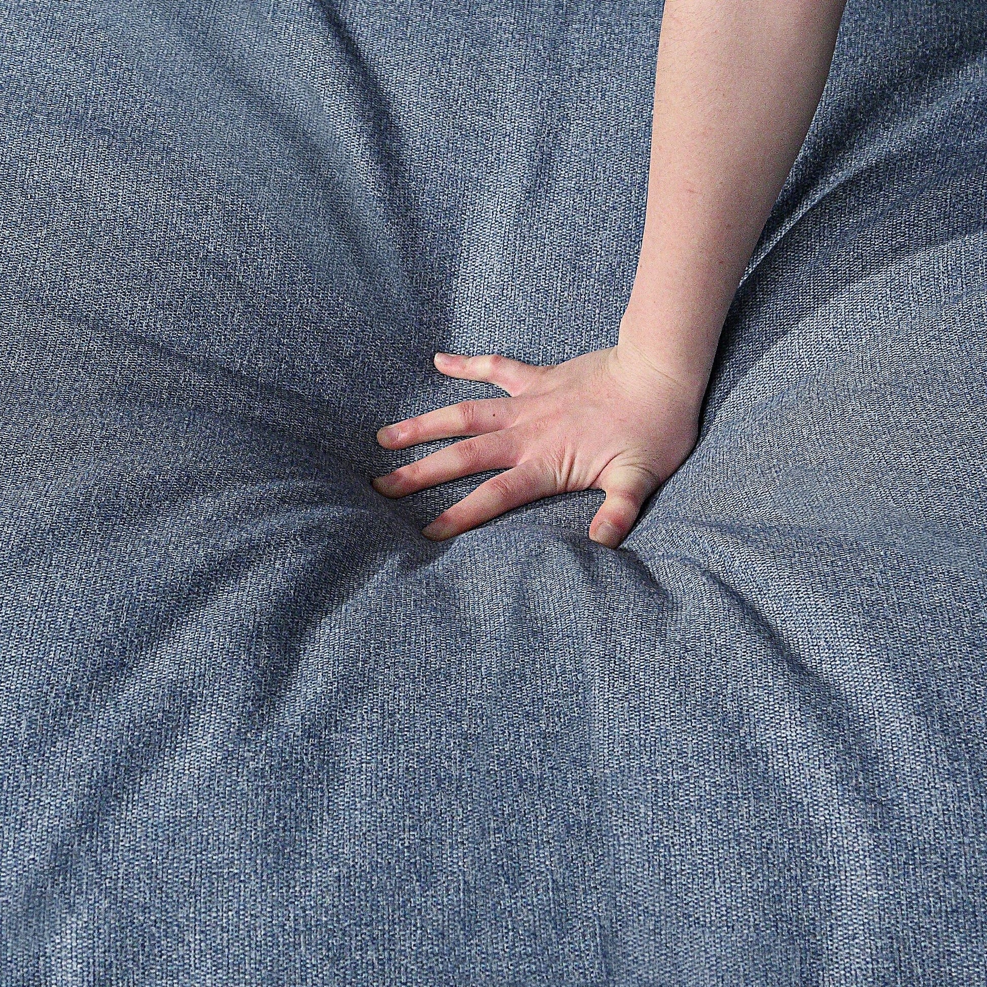 • Comfort e sostegno: il tessuto in lino blu (5% lino, 40% viscosa, 55% poliestere) imbottito in piuma d'oca offre un comfort perfetto e un sostegno eccellente per il corpo. Il divano mantiene la sua forma anche dopo un uso prolungato, garantendoti di rilassarti e goderti il ​​tempo libero dopo una dura giornata di lavoro.