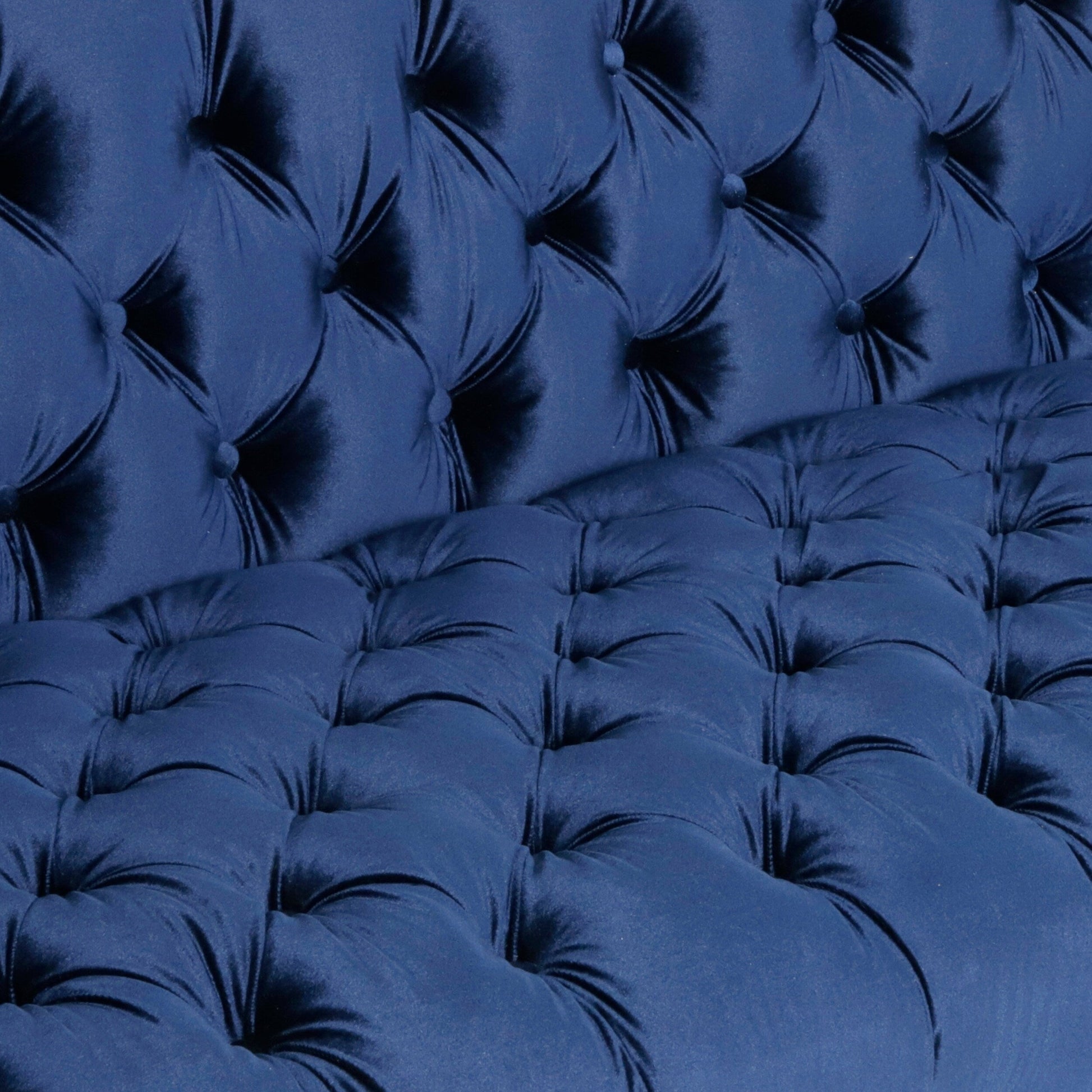 Divano a 3 posti moderno blu 86,75 in similpelle con bottoni trapuntati e gambe in ferro lisce a forma di T per soggiorno