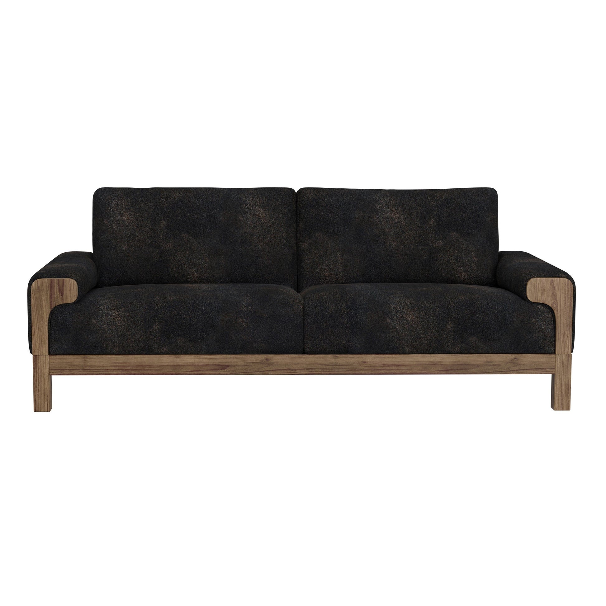 Divano Caisy, similpelle nera, struttura in legno massello...