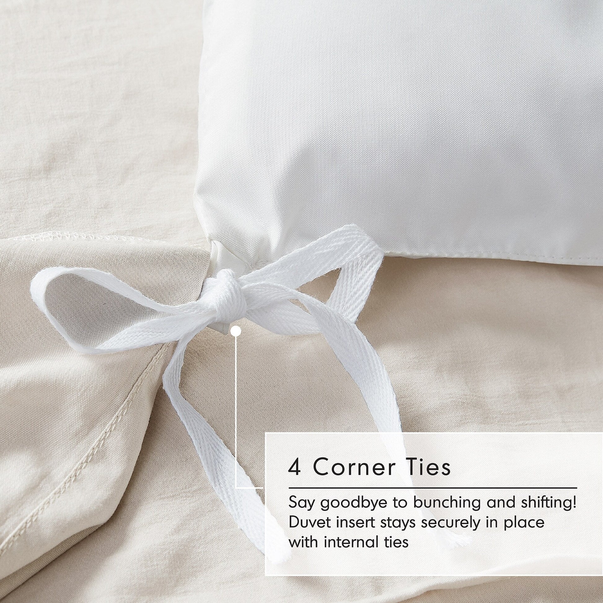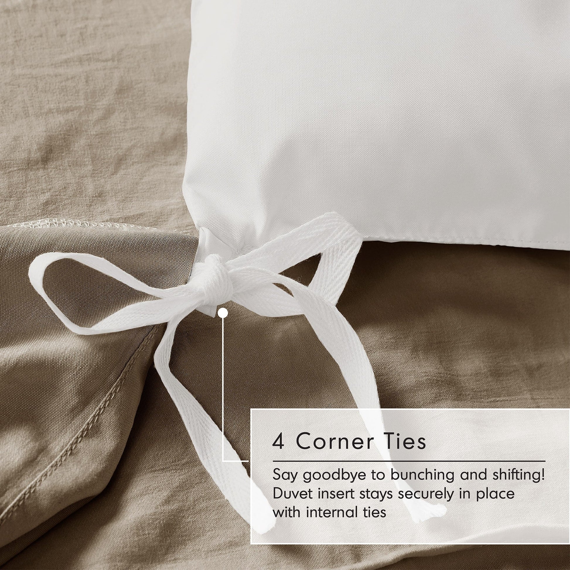 - Progettato con 4 lacci negli angoli interni e una chiusura a bottone per mantenere l'inserto del piumone (non incluso) al sicuro, evitando che si arriccia o si sposti.