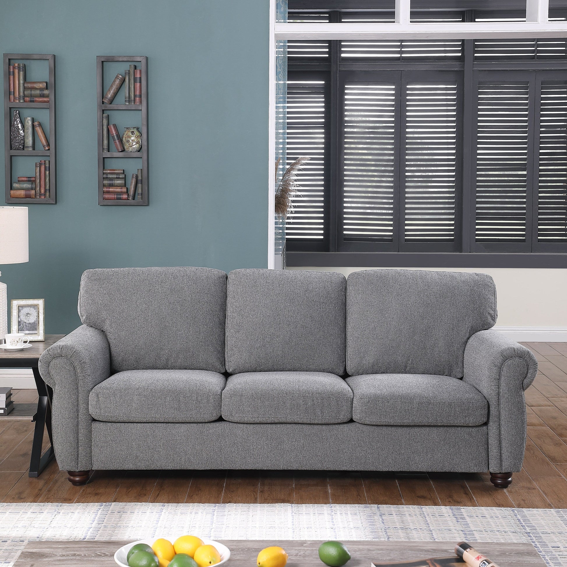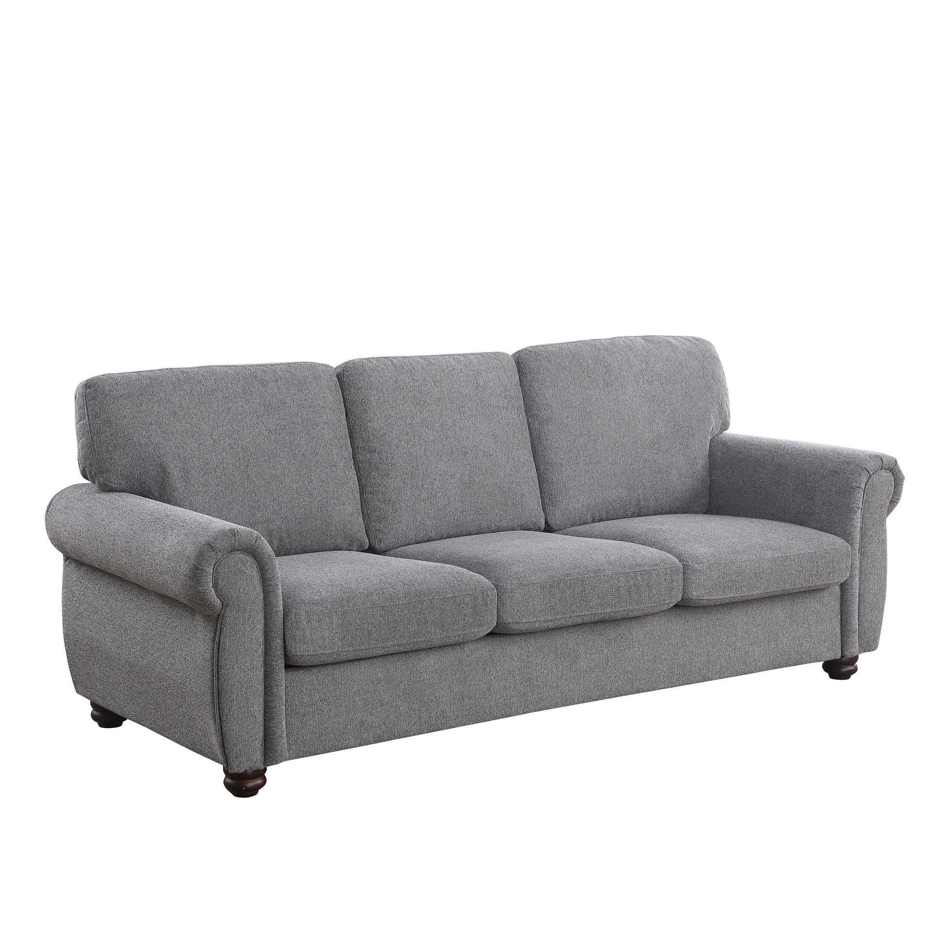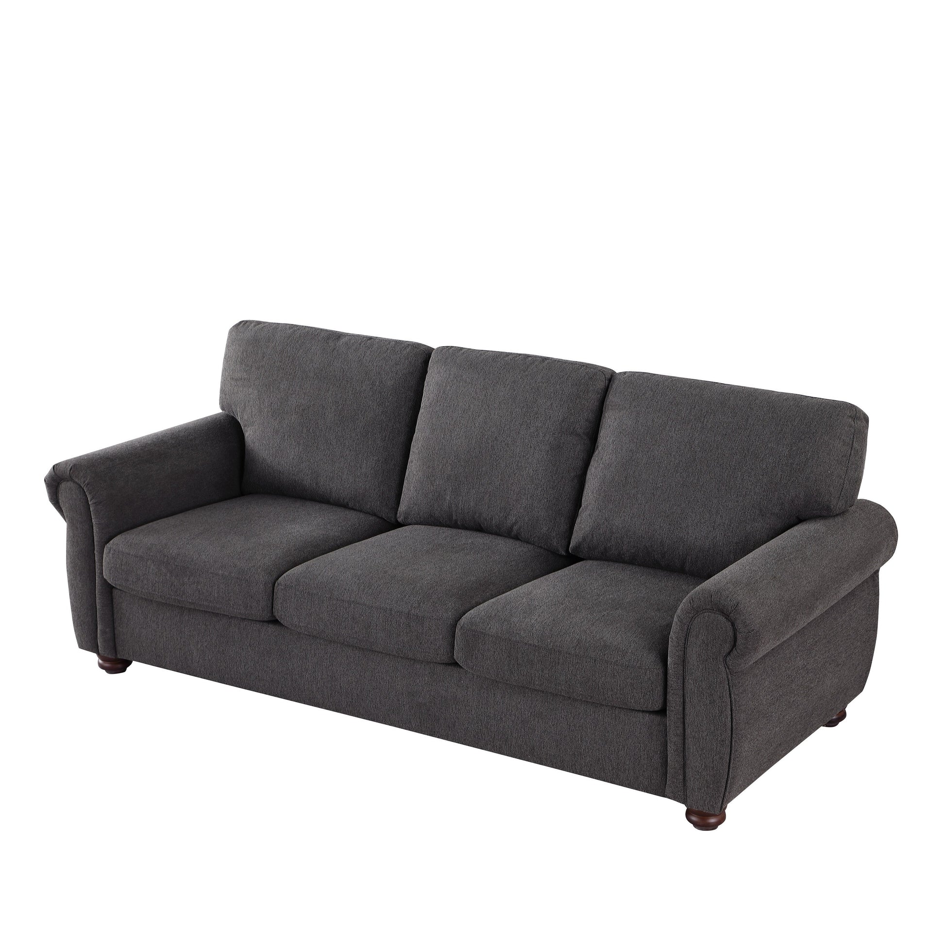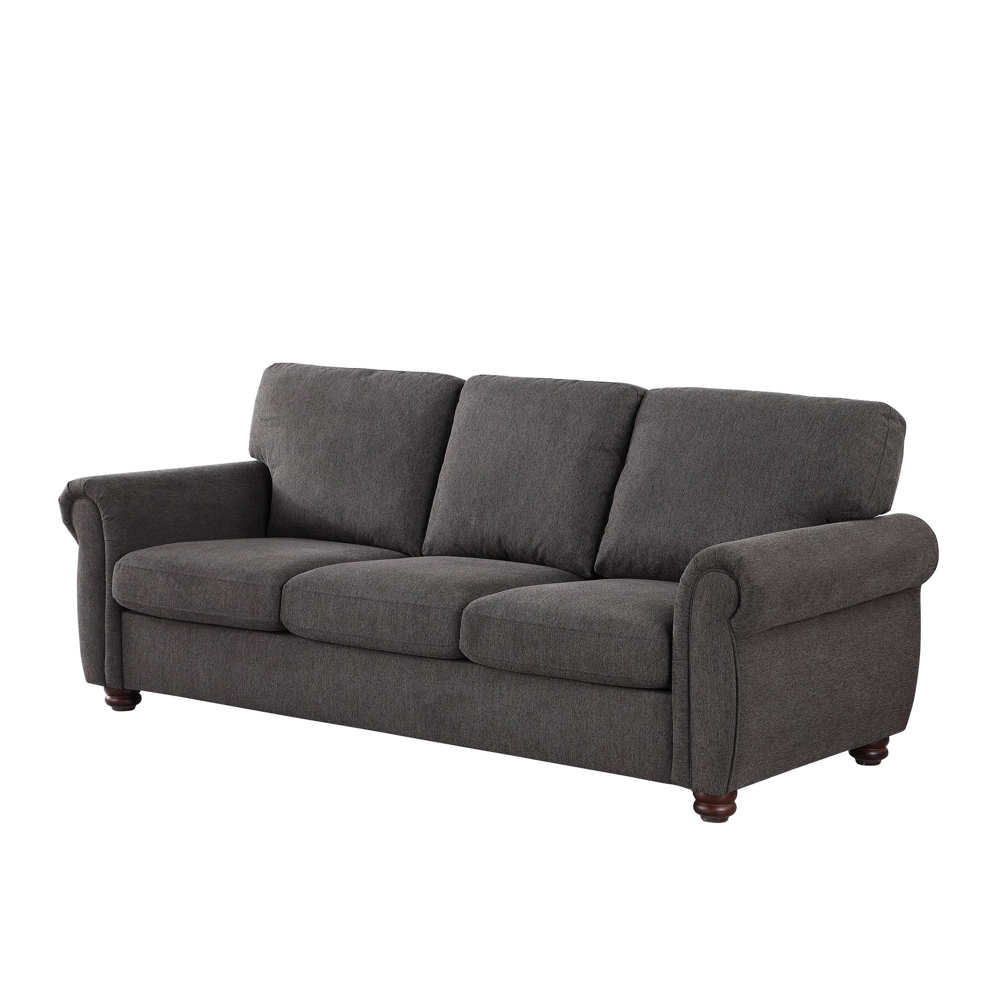 Divano ciniglia a 3 posti con braccioli arrotolati
