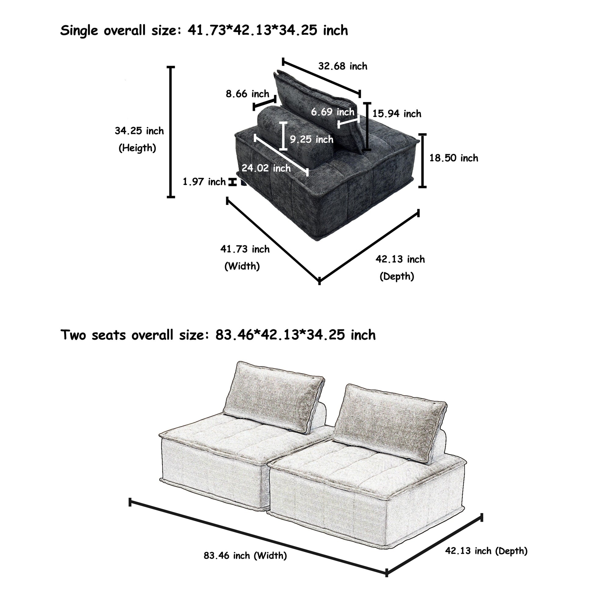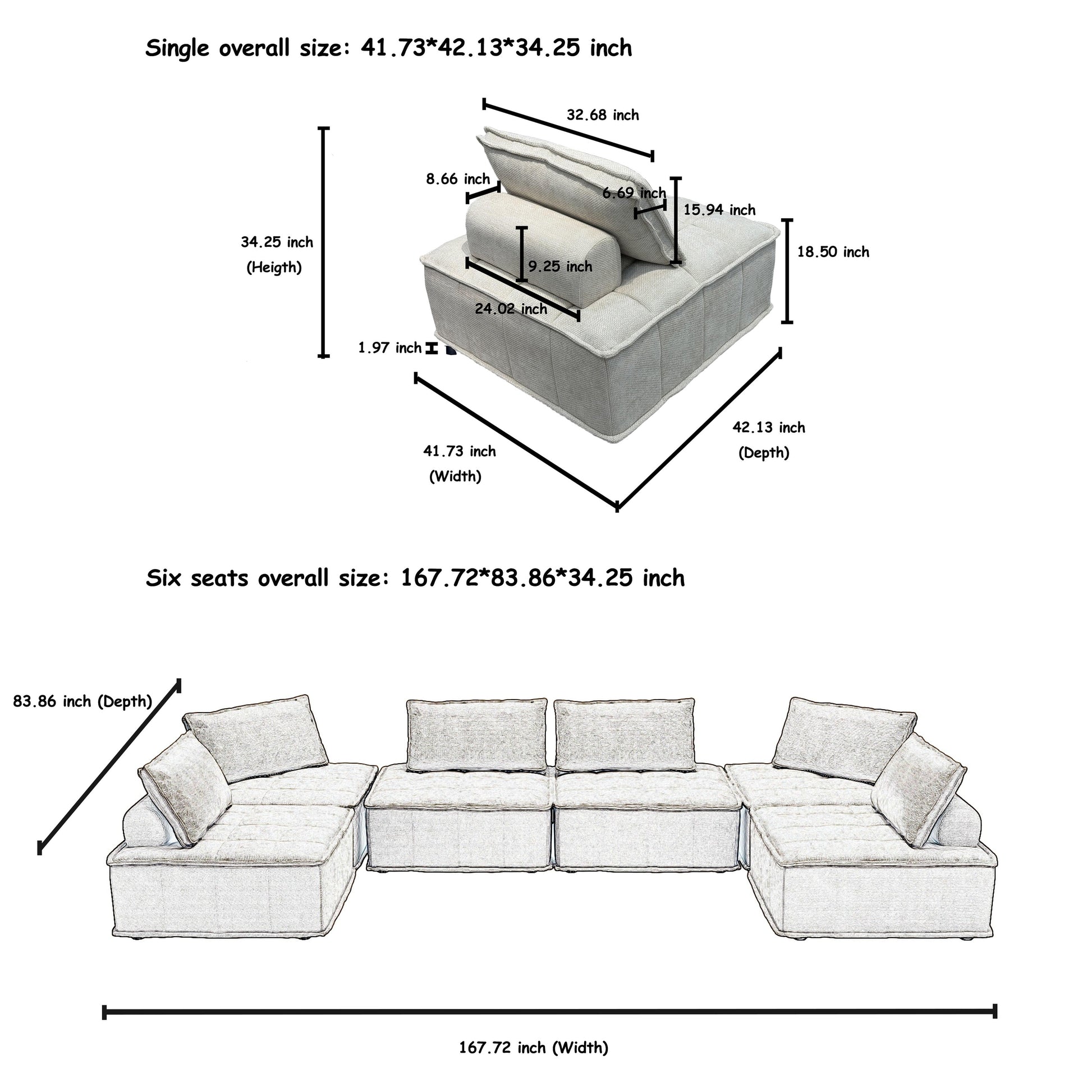 Set di divani modulari Chenille da 6 pezzi