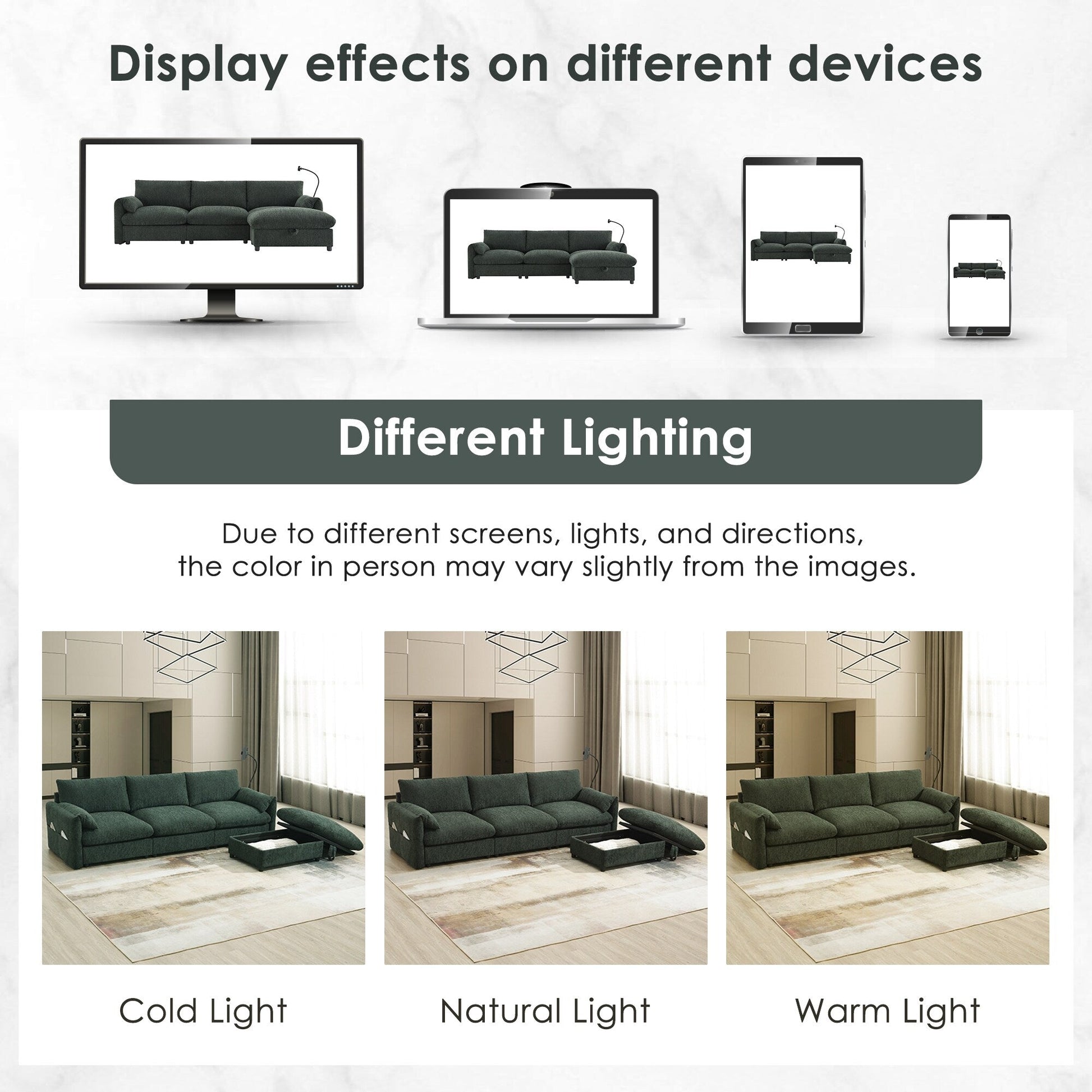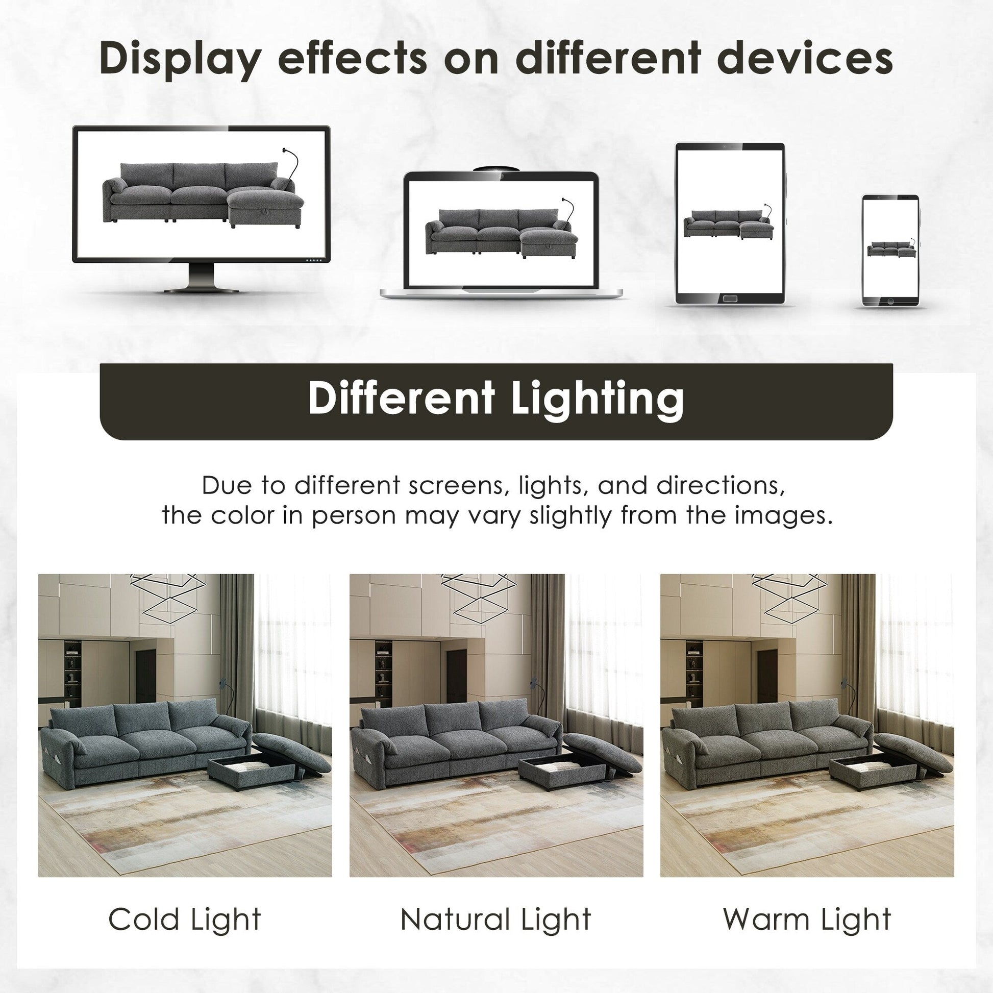 Pouf contenitore multifunzionale di grandi dimensioni: il divano è dotato di un pouf eccezionalmente grande da 82 cm che offre comfort e praticità. Questo pezzo multifunzionale può essere utilizzato come poggiapiedi o seduta aggiuntiva, offrendo anche spazio nascosto per riporre coperte, libri o altri oggetti essenziali, contribuendo a mantenere la zona giorno ordinata e organizzata.