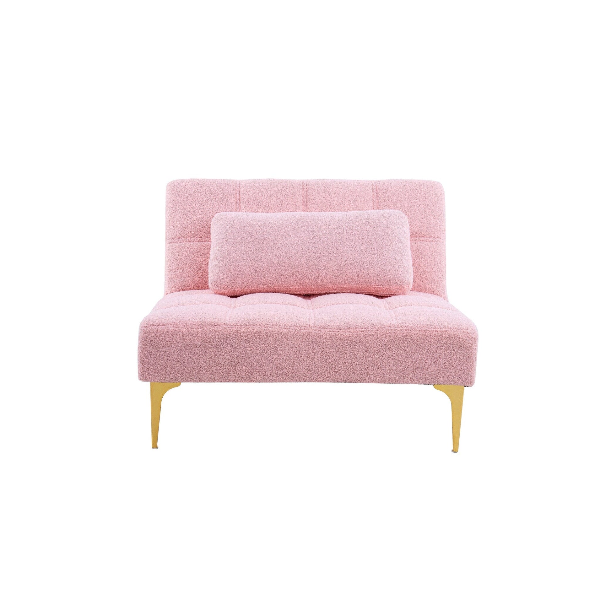 Questa poltrona futon è un'aggiunta versatile ed elegante a qualsiasi piccolo spazio, perfetta per appartamenti o monolocali. Dispone di tre posizioni dello schienale, che consentono di regolare la poltrona per rilassarsi o dormire. La schiuma e le molle di alta qualità, insieme al tessuto Teddy, garantiscono un'esperienza di seduta e di sonno confortevole. Le gambe in metallo color oro aggiungono un tocco di eleganza e stile. Facile da montare, tutti i componenti e gli attrezzi sono nascosti nella parte inferiore della poltrona e si monta in pochi minuti.