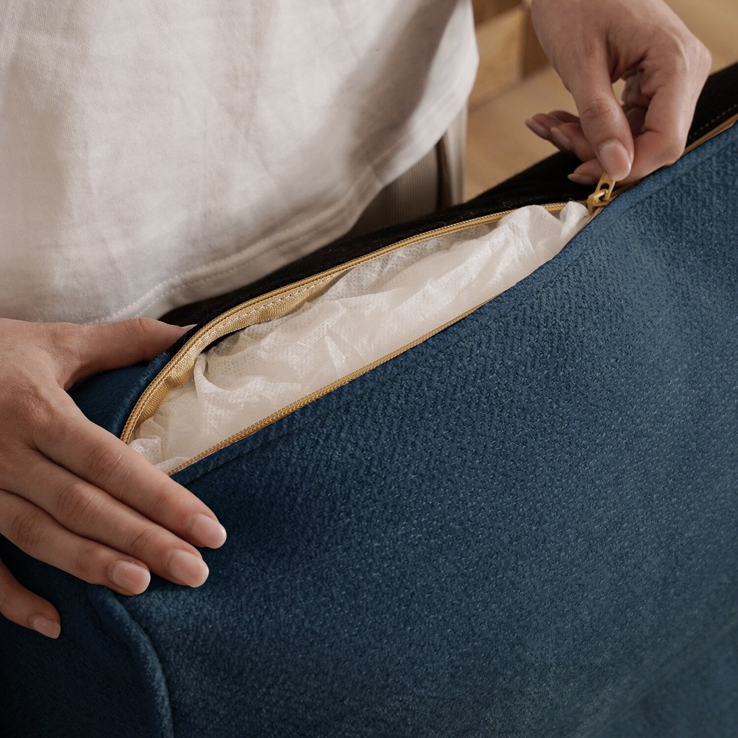 Divano in ciniglia con braccioli regolabili e cuscini...