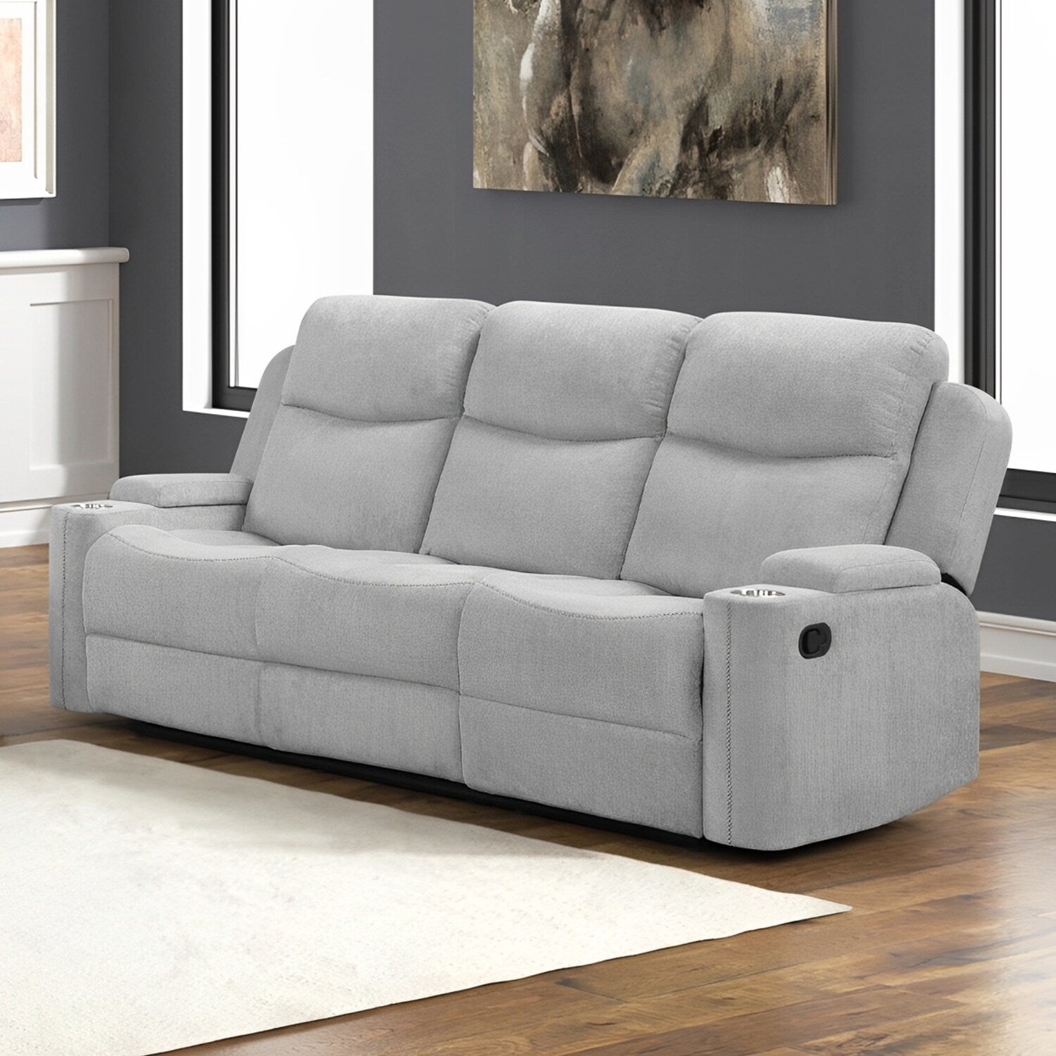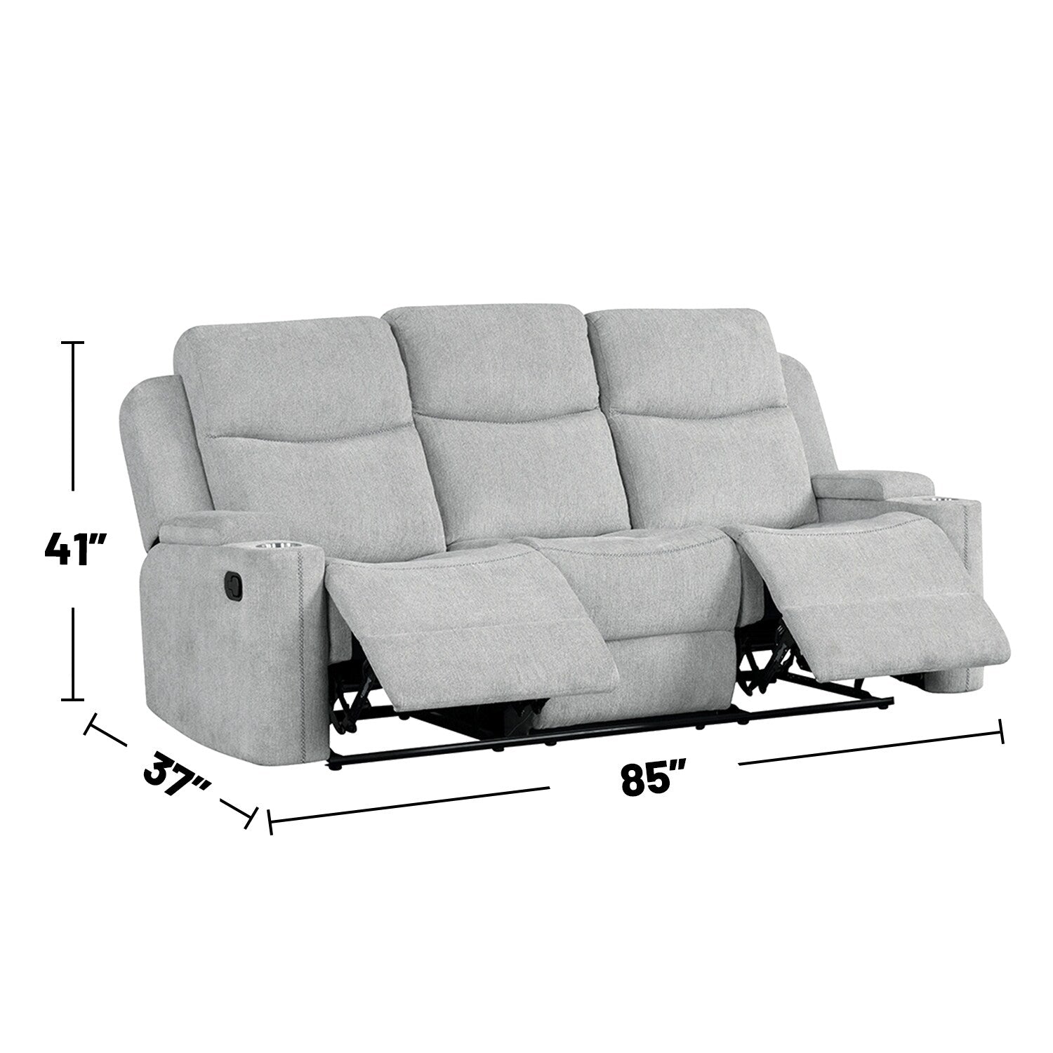 Divano con movimento manuale rivestito in ciniglia e 2 portabicchieri in grigio chiaro