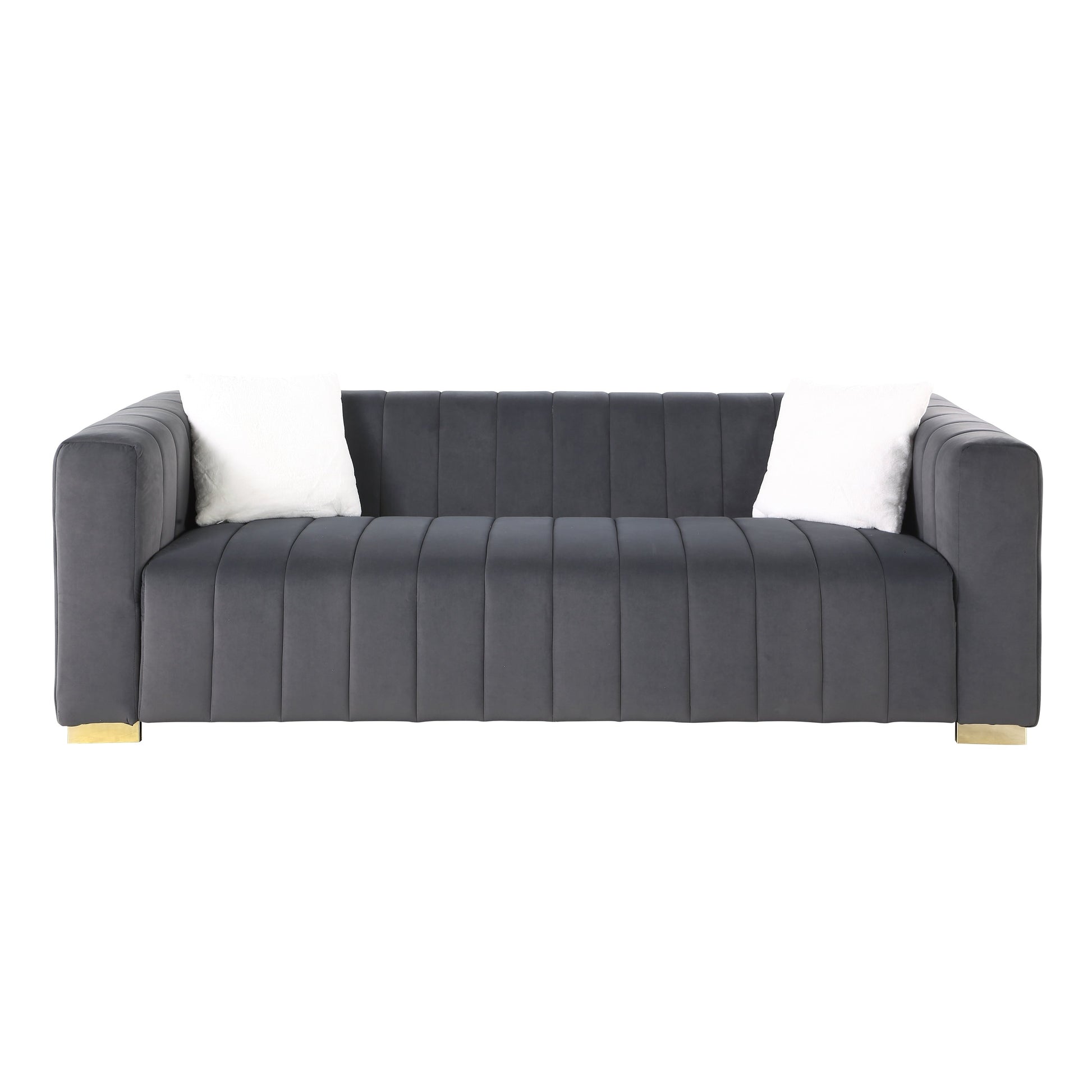 Questo divano a due posti è un'aggiunta lussuosa ed elegante a qualsiasi casa. I morbidi cuscini in schiuma a densità multipla offrono un comfort ineguagliabile, permettendoti di rilassarti con stile e comodità. Il moderno design a canali trae ispirazione dal classico Chesterfield, rendendo questo divano un pezzo di design di grande impatto. Il pregiato velluto è canalizzato sia all'interno che all'esterno della struttura, creando uno splendido dettaglio di design che può essere apprezzato da qualsiasi angolazione della stanza. I cuscini singoli a "panca" offrono una comoda seduta per più persone senza l'inconveniente di separare i cuscini, garantendo un'esperienza di seduta coesa e invitante.