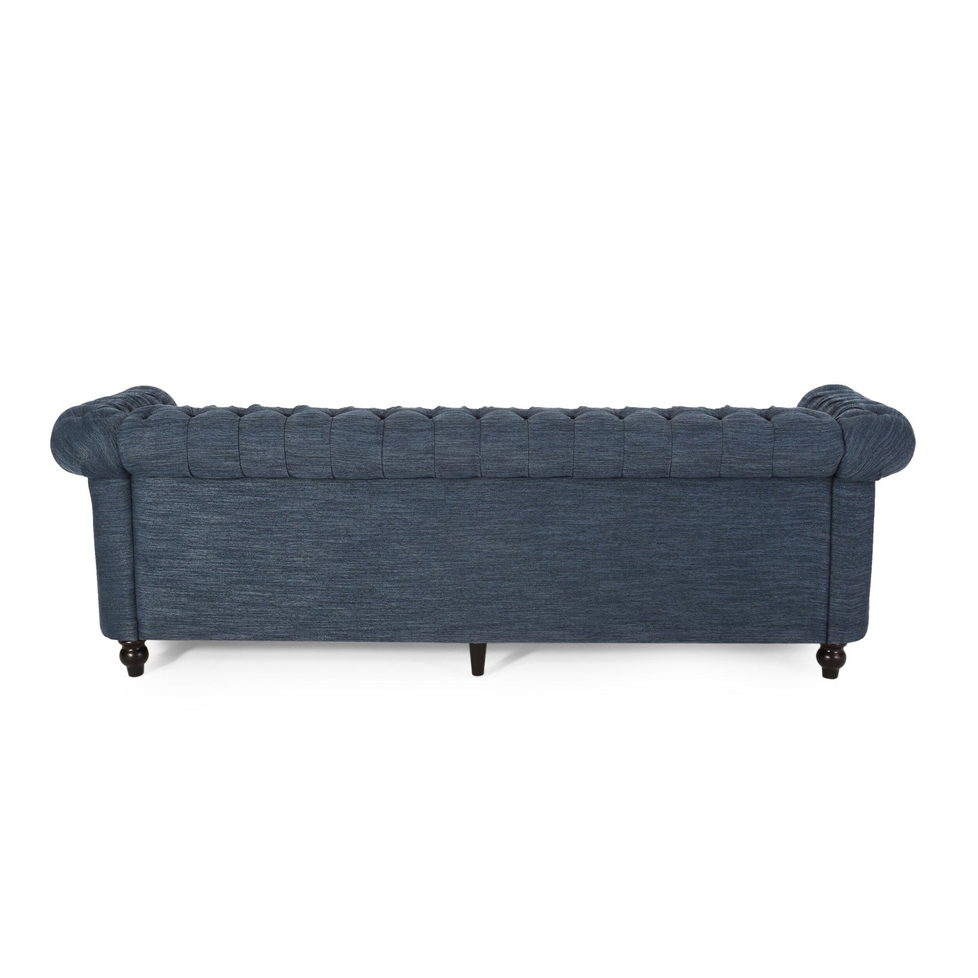 • Elementi di design classici: questo divano presenta una profonda trapuntatura a bottoni, braccioli a volute e dettagli a forma di rotaia, che contribuiscono al suo aspetto classico e tradizionale. Questi dettagli intricati aggiungono un tocco di raffinatezza e raffinatezza al tuo arredamento.