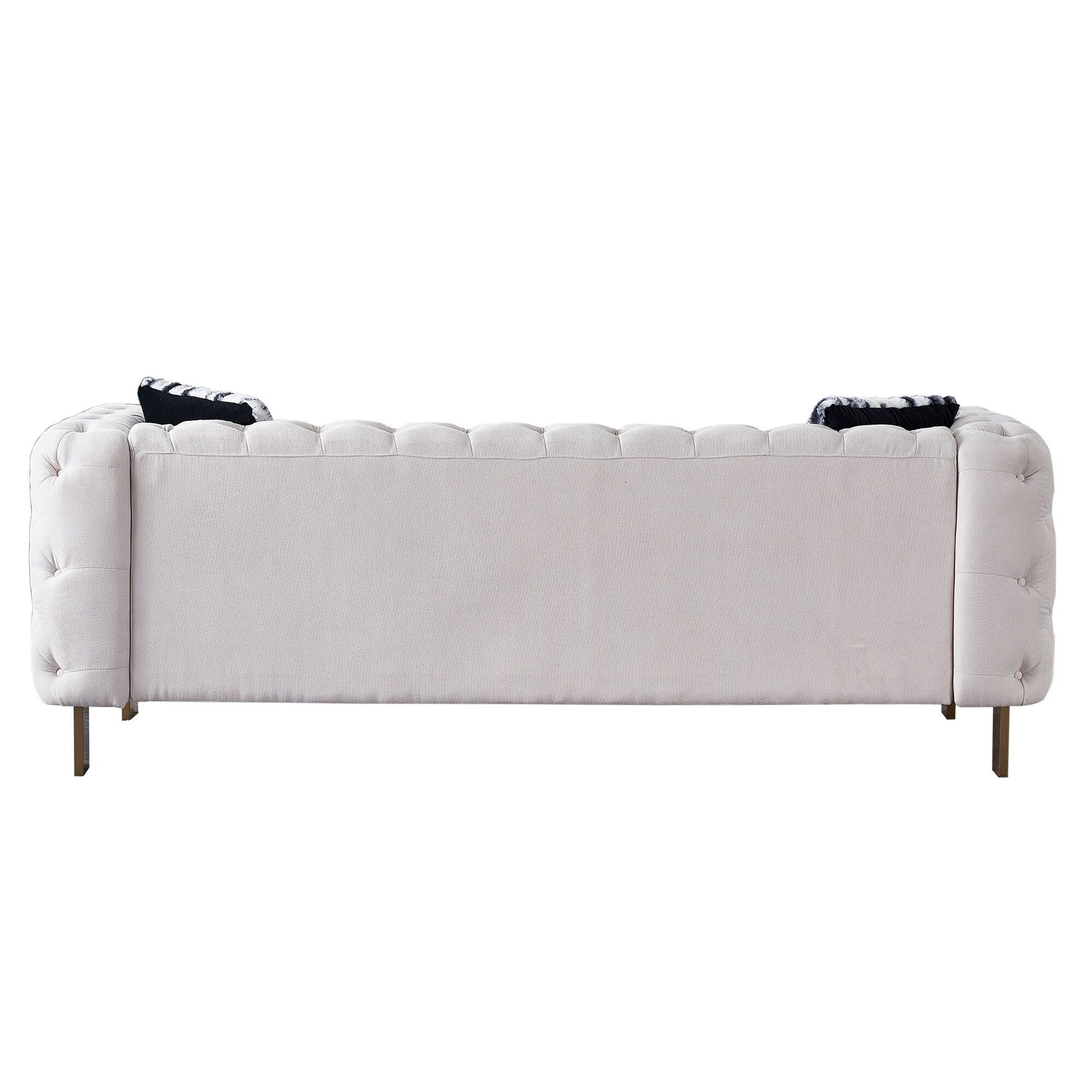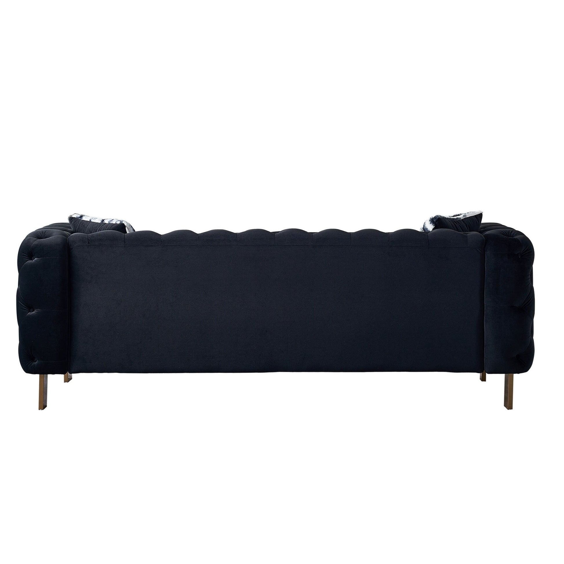 Questo moderno divano in velluto è stato progettato con bottoni trapuntati e decorato con 4 gambe in metallo dorato. Semplice e moderno, un'ottima aggiunta per completare il soggiorno, la camera da letto e l'ufficio, un complemento d'arredo perfetto per abbinarsi al tuo arredamento.