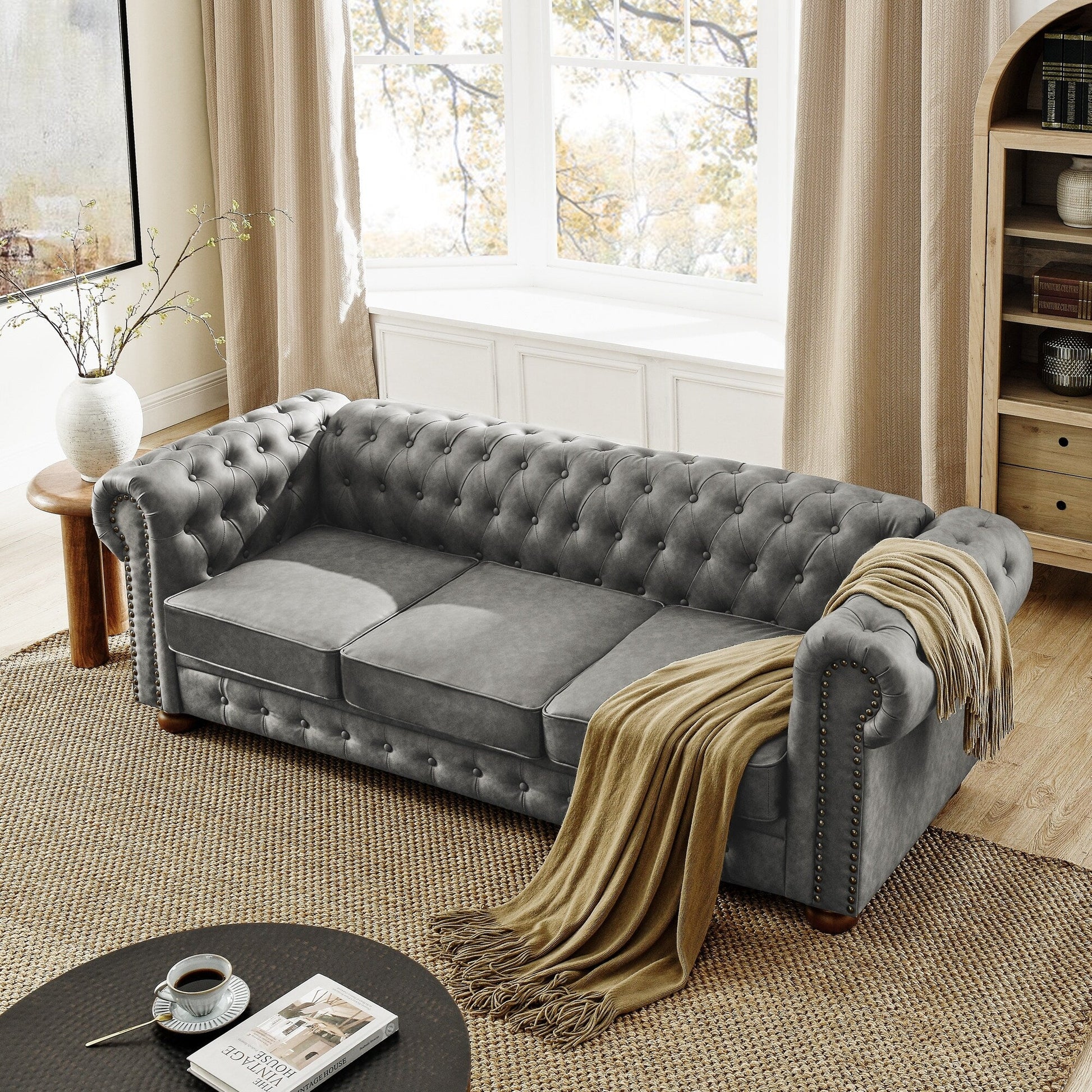 Divano Chesterfield imbottito in PU, 3 posti, con...