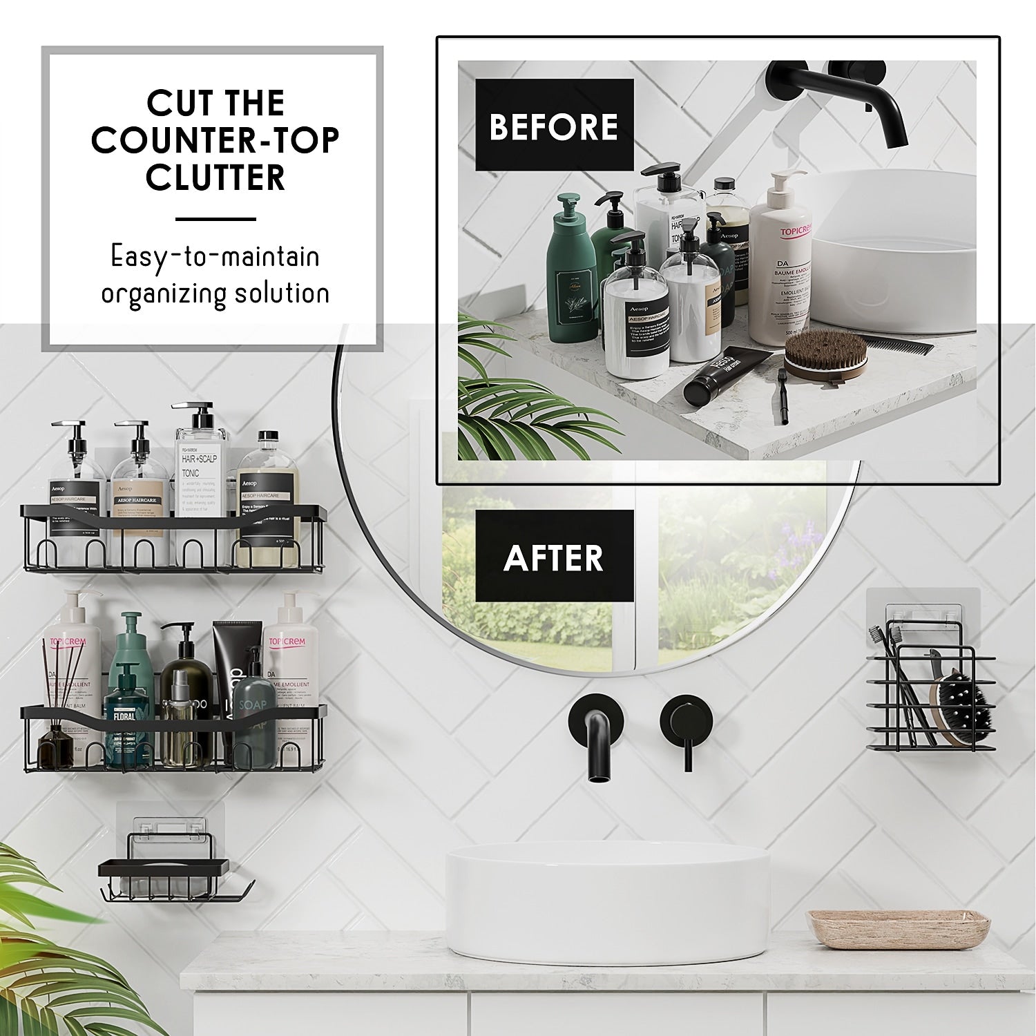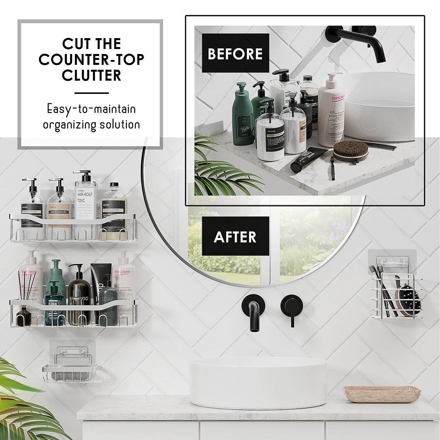 Ottimizza lo spazio del tuo bagno con l'organizer adesivo per doccia Clara Clark Shower Caddy, caratterizzato da un design in acciaio inossidabile antiruggine e di grande capacità, perfetto per organizzare le pareti della doccia e per l'arredamento della casa.