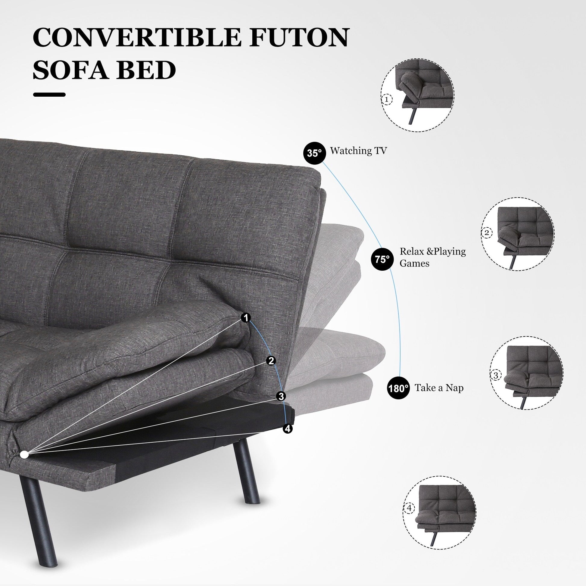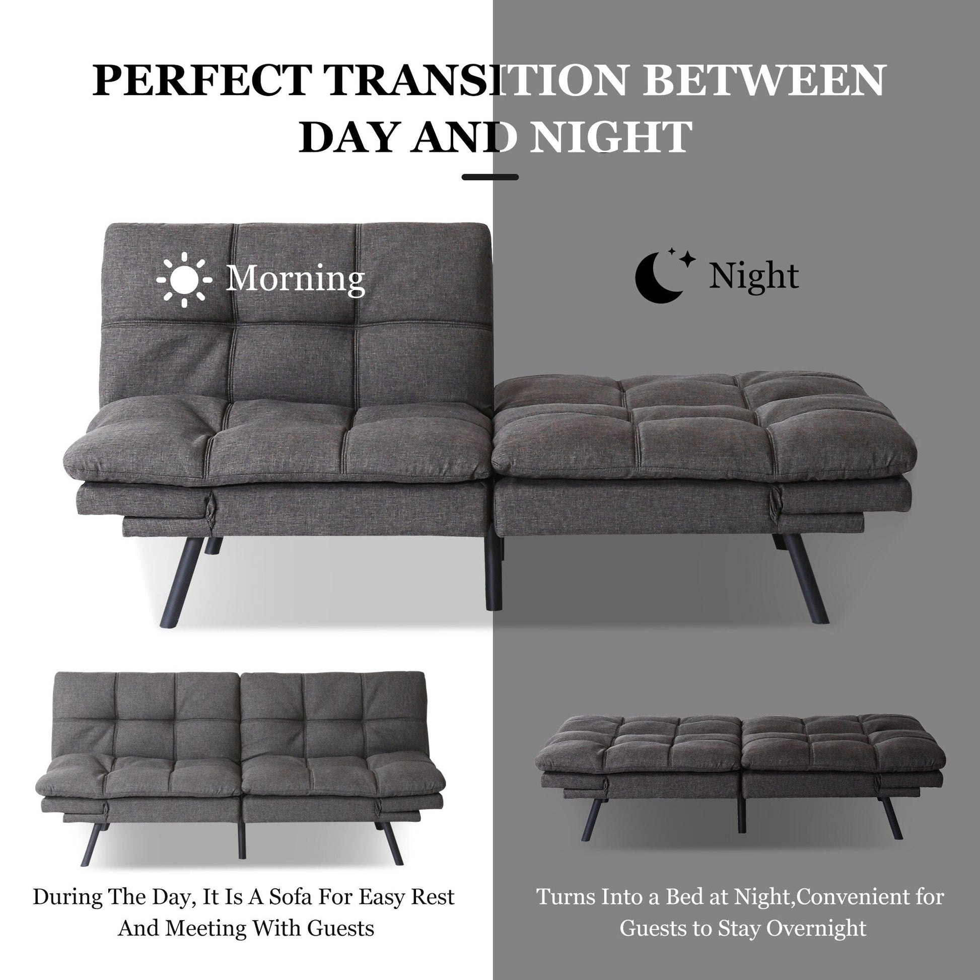 Divano letto trasformabile con braccioli regolabili