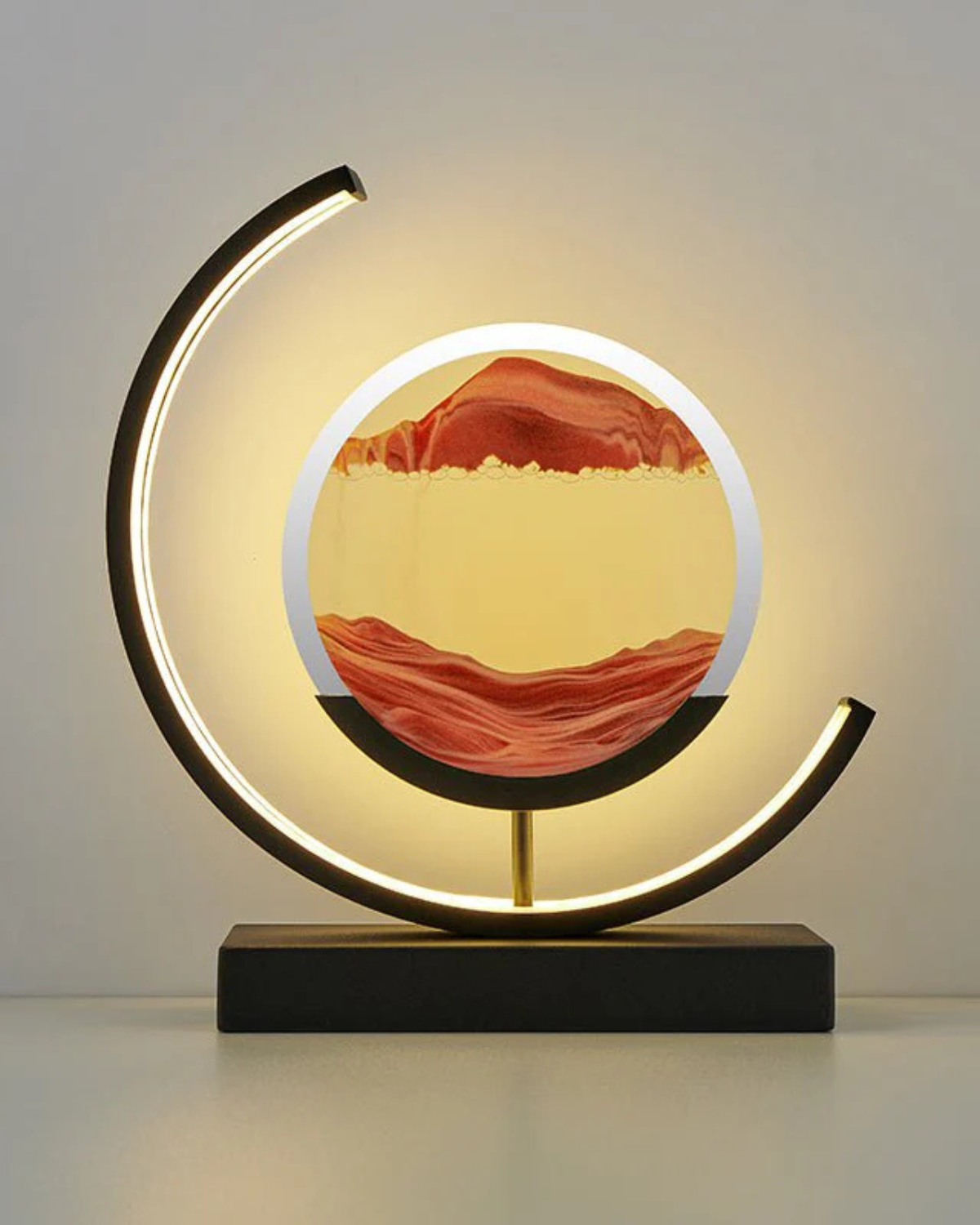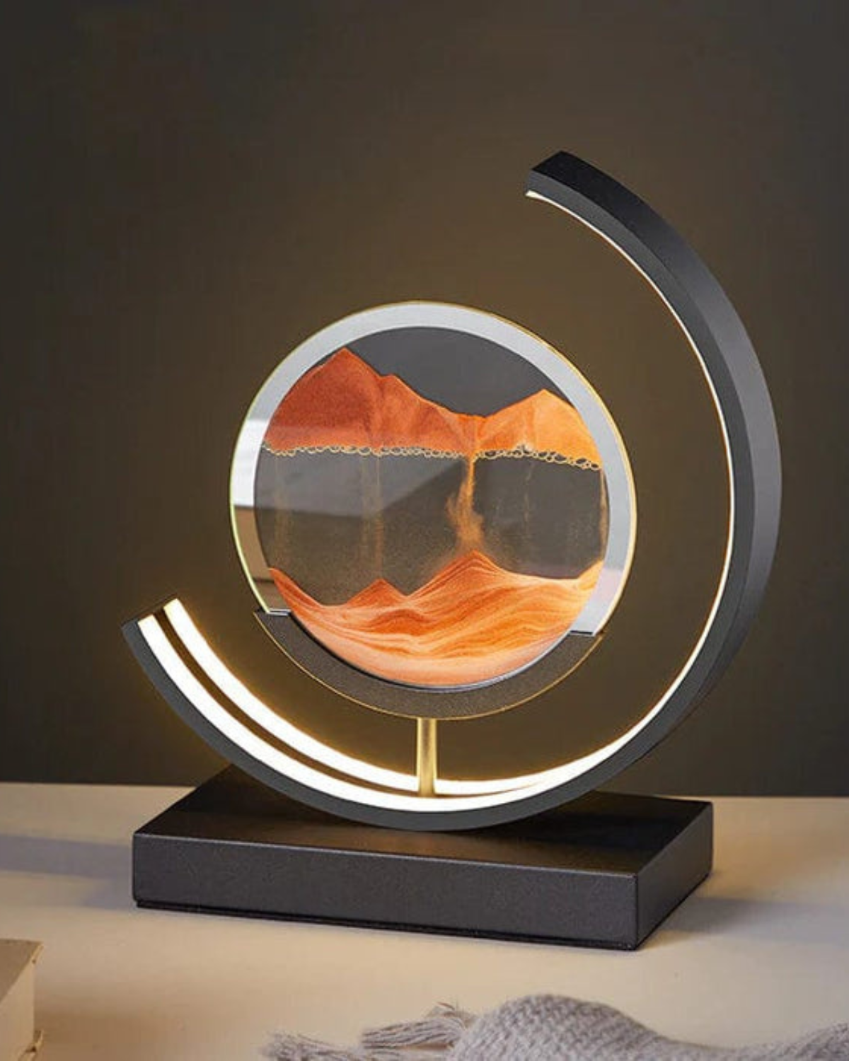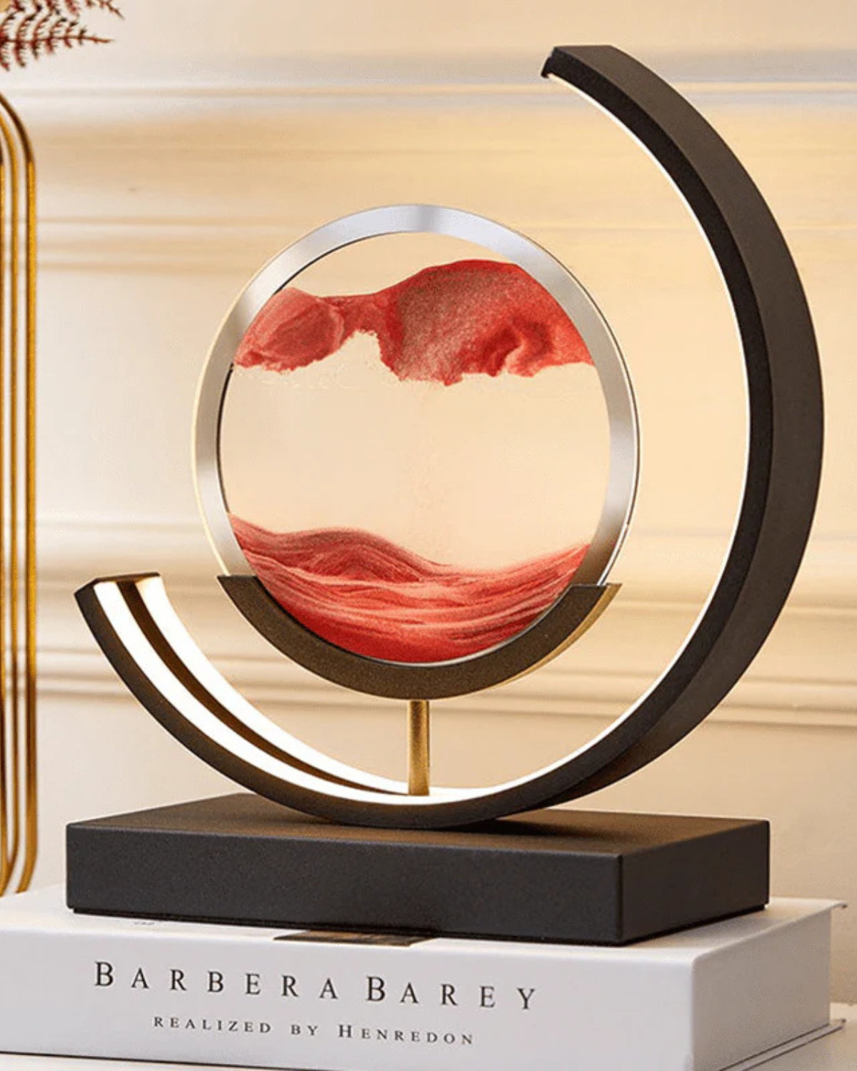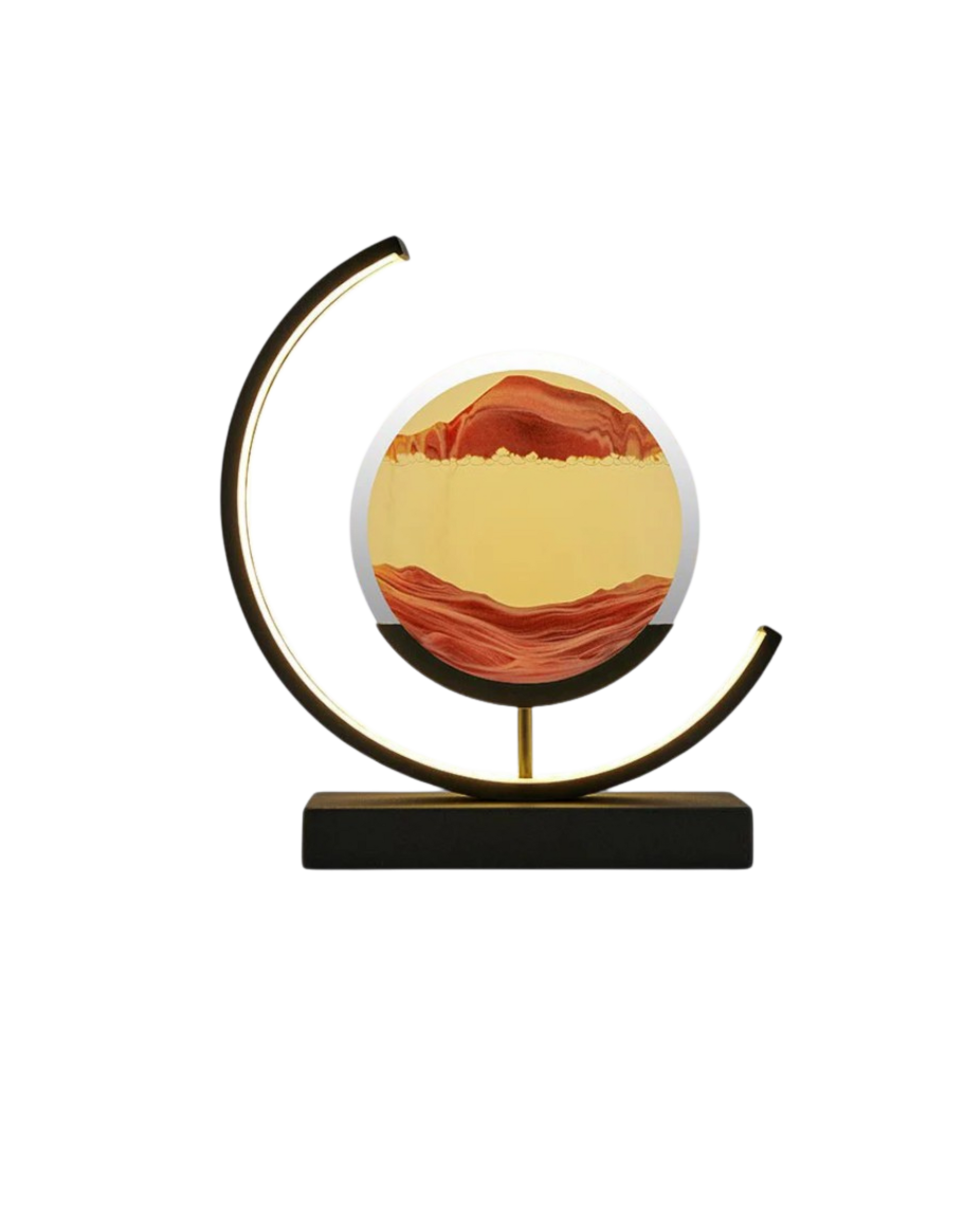 Un'affascinante fusione di arte e natura, Le Mirage cattura la bellezza di paesaggi mutevoli in un delicato equilibrio tra movimento e quiete. Questa raffinata opera d'arte di sabbia, racchiusa in una cornice dorata a forma di mezzaluna, infonde un senso di tranquillità e meraviglia in qualsiasi spazio. Mentre la sabbia cade a cascata con grazia, forma motivi in ​​continua evoluzione che ricordano lontani orizzonti desertici e tramonti dorati.