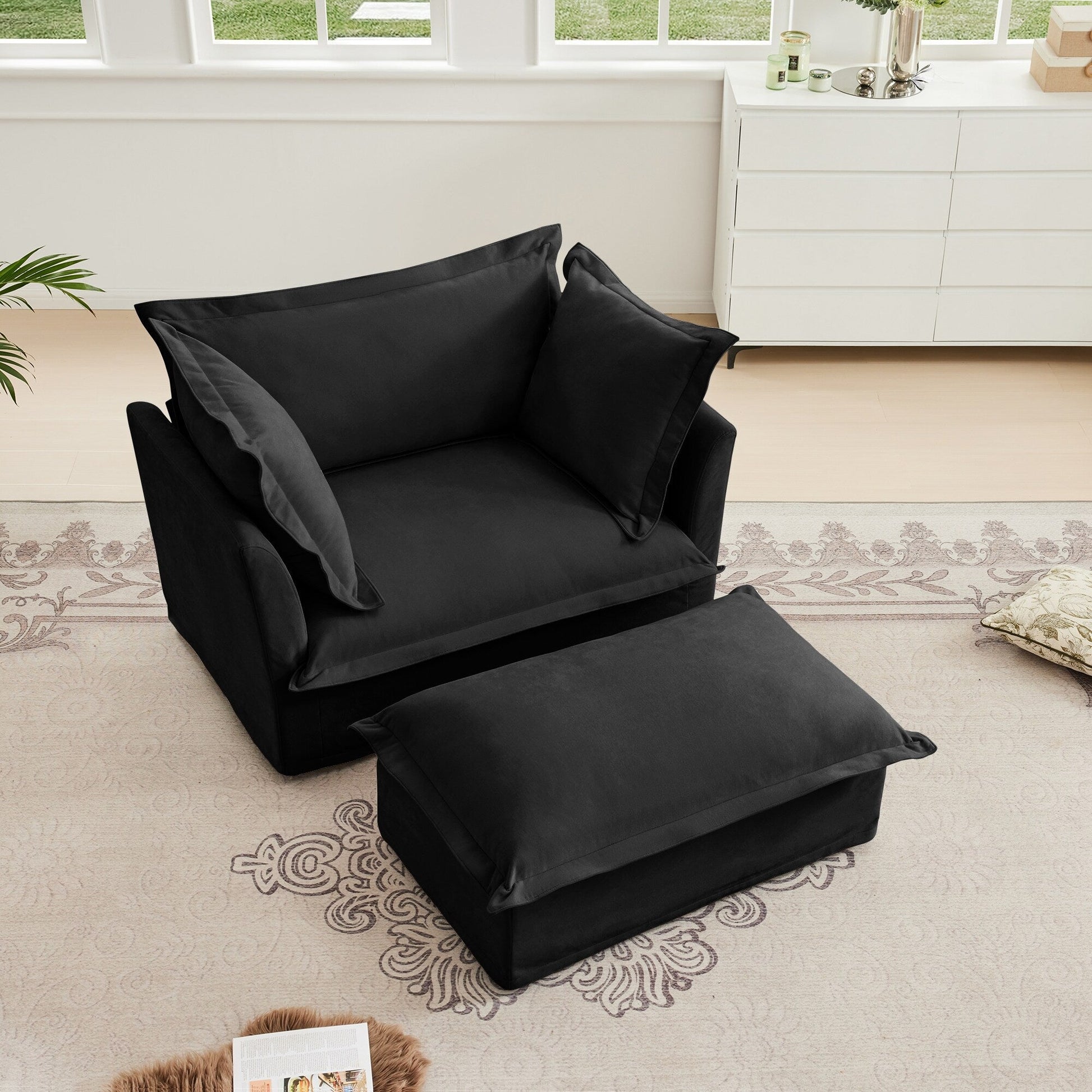 Poltrona imbottita con poggiapiedi, poltrona con...
