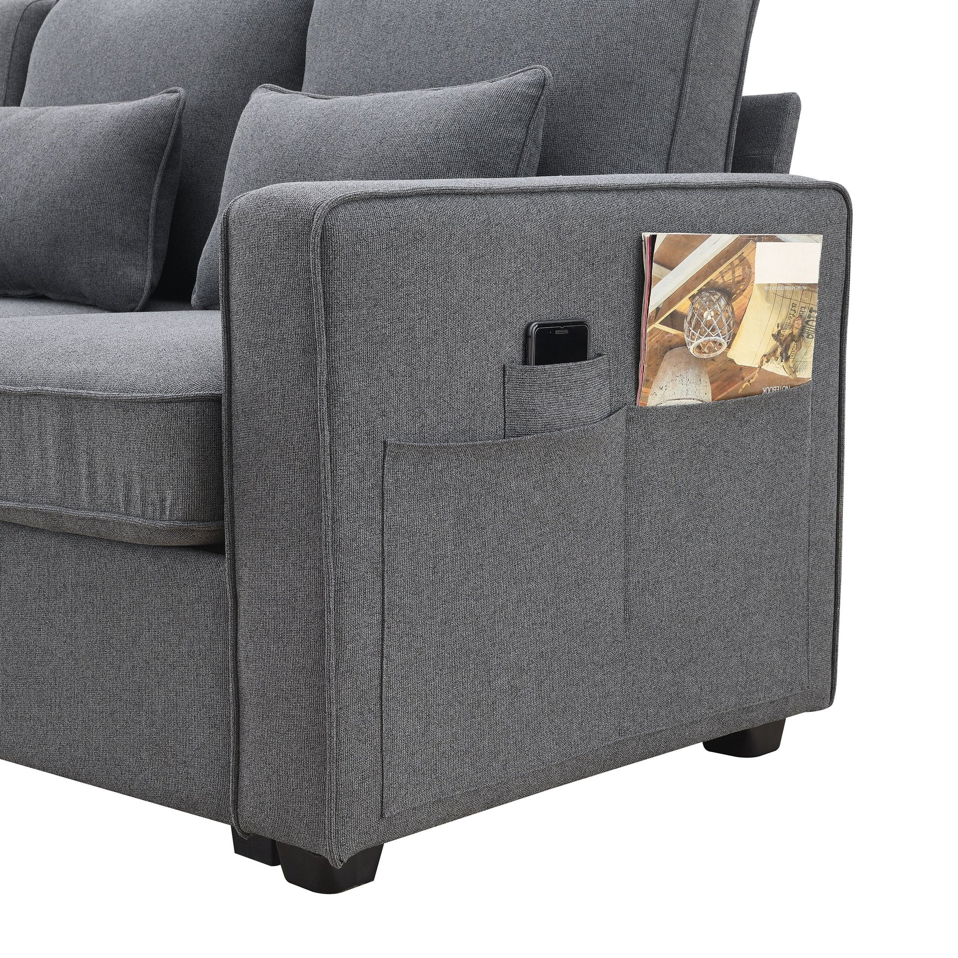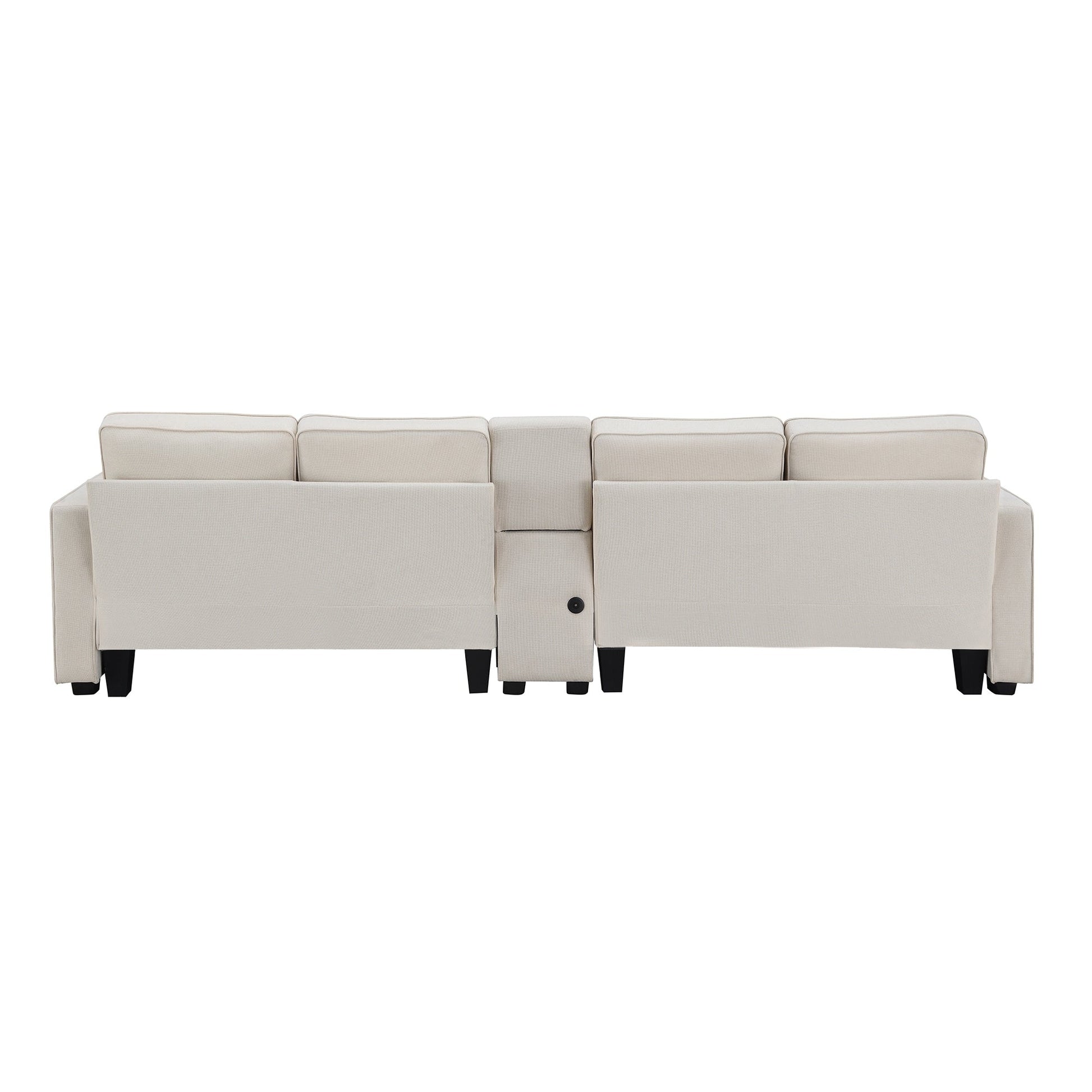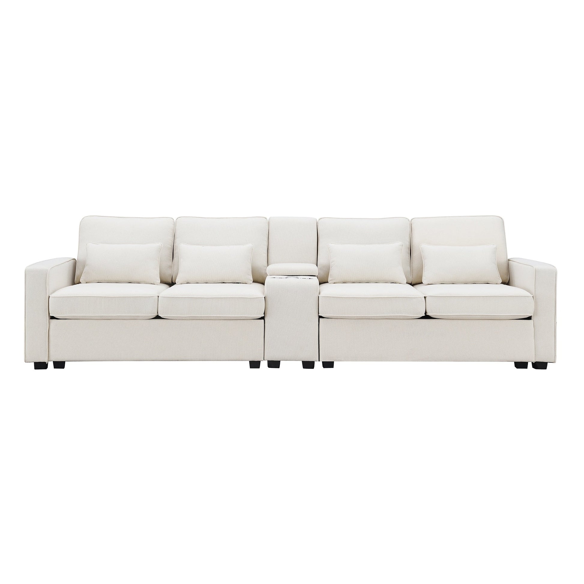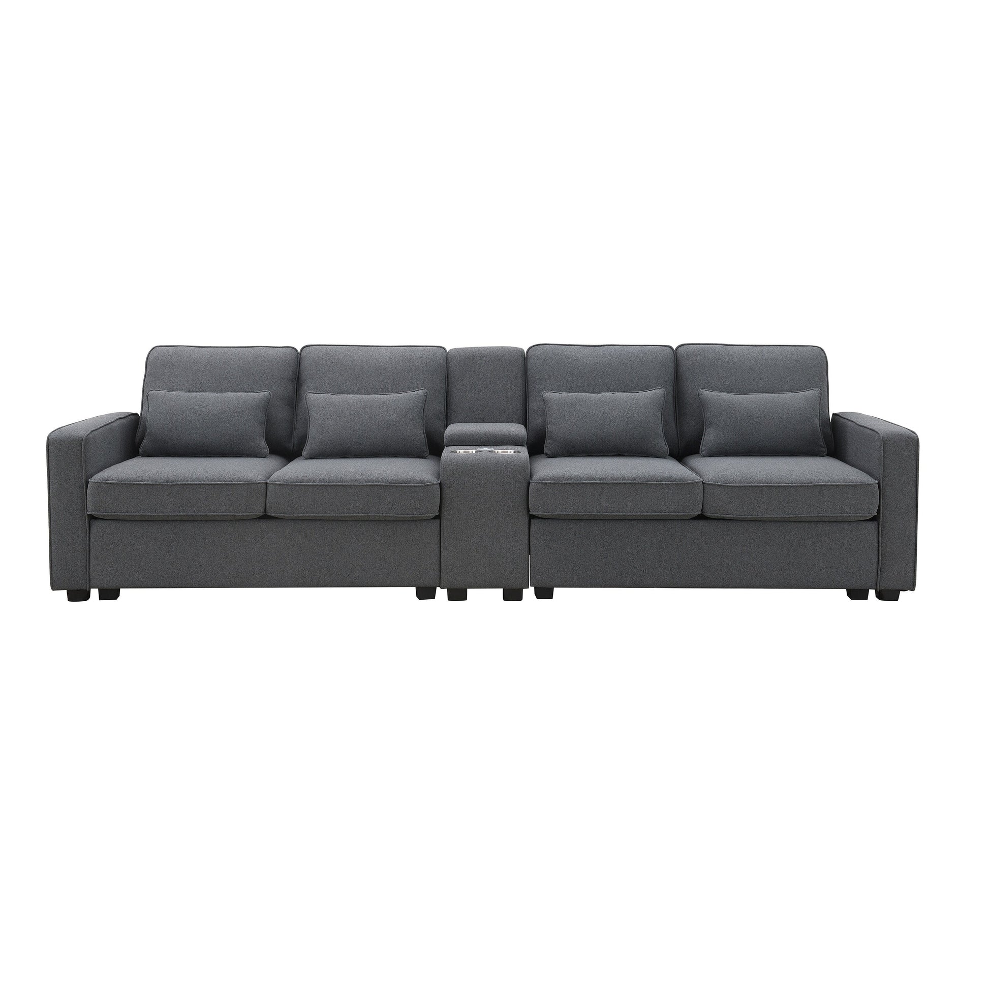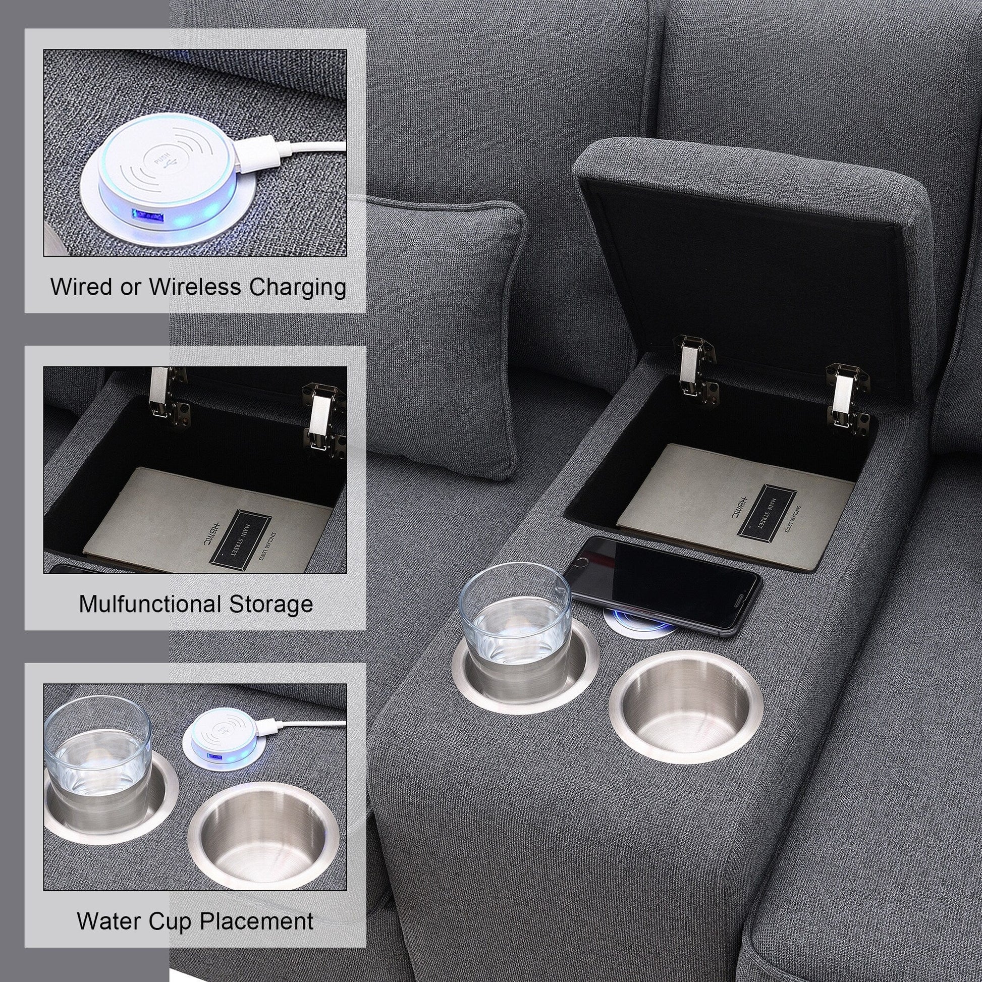 Divano imbottito con consolle, 2 portabicchieri e 2...